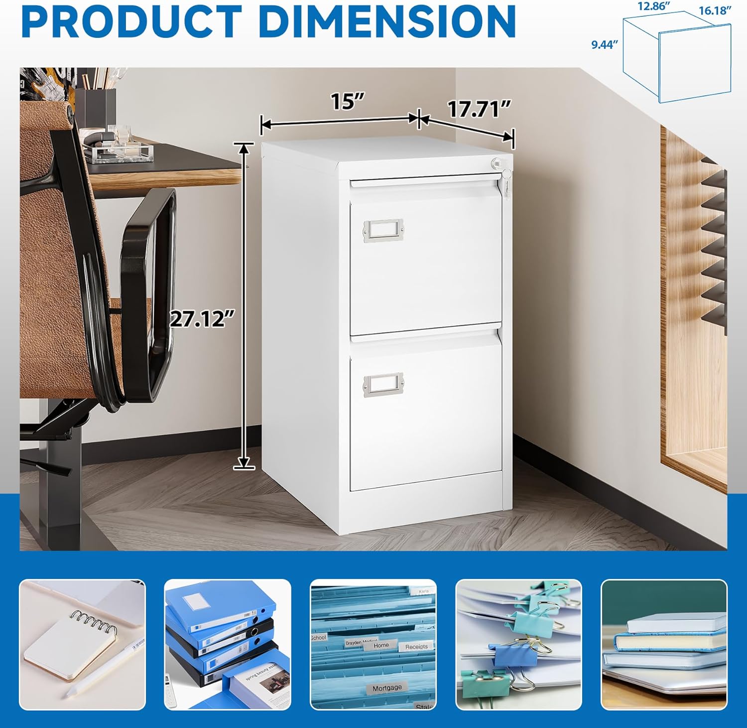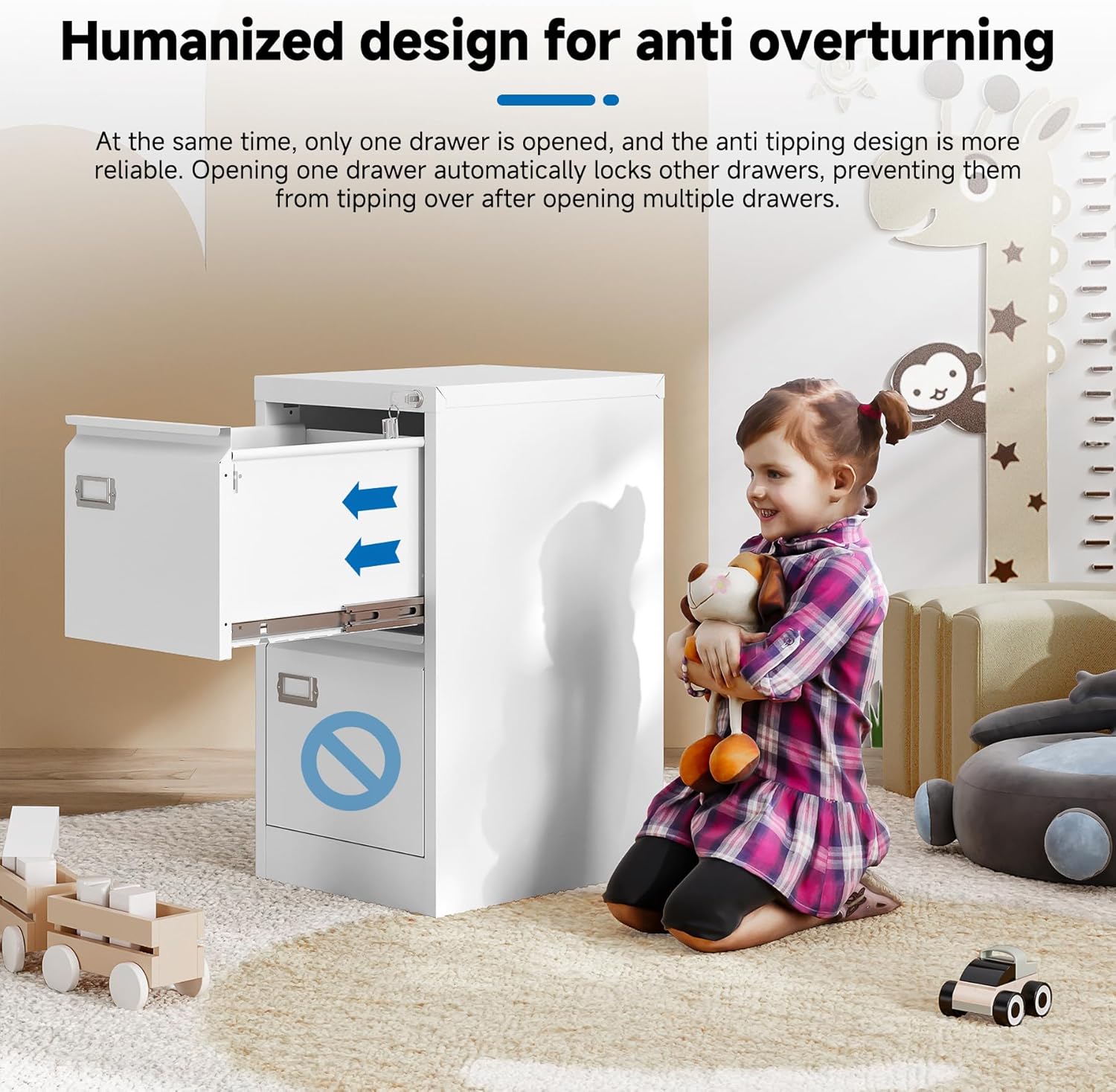 - 【HIGH SECURITY】This file cabinet can lock 2 drawers at the same time with one lock, and is equipped with 2 keys. With an anti-tilting mechanism, when 1drawer is opened, the interlocking system prevents the other drawer from opening, thereby preventing tipping and protecting your safety.