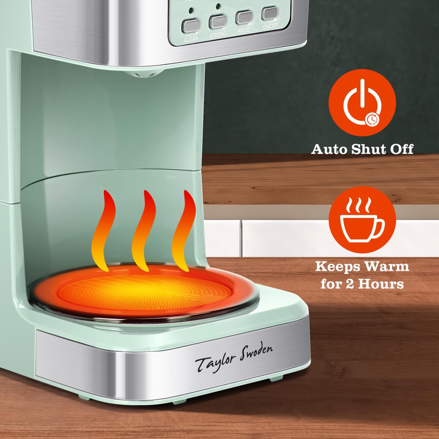 Taylor Swoden 12-Cup Programmable Coffee Maker, Regular & Strong Brew Drip Coffee Machine for Home and Office, Glass Carafe, Pause & Serve, Auto Shut Off, Green & Stainless Steel