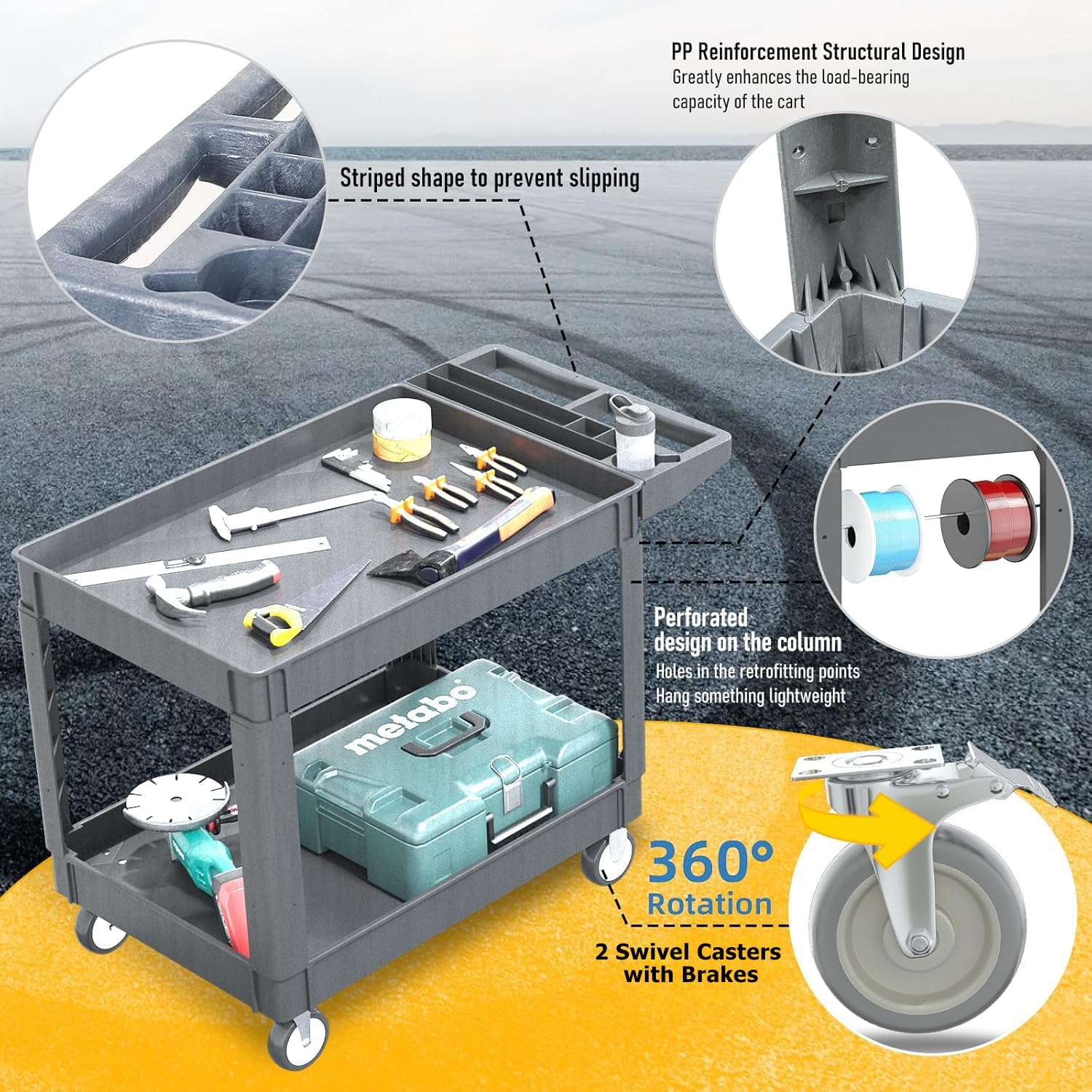 - ✨【HIGH-QUALITY MATERIALS】: This cart is made from high-strength, industrial-grade polypropylene to resist chipping or denting. It is also waterproof and rust-proof and easy to clean, so it is suitable for indoor and outdoor use.