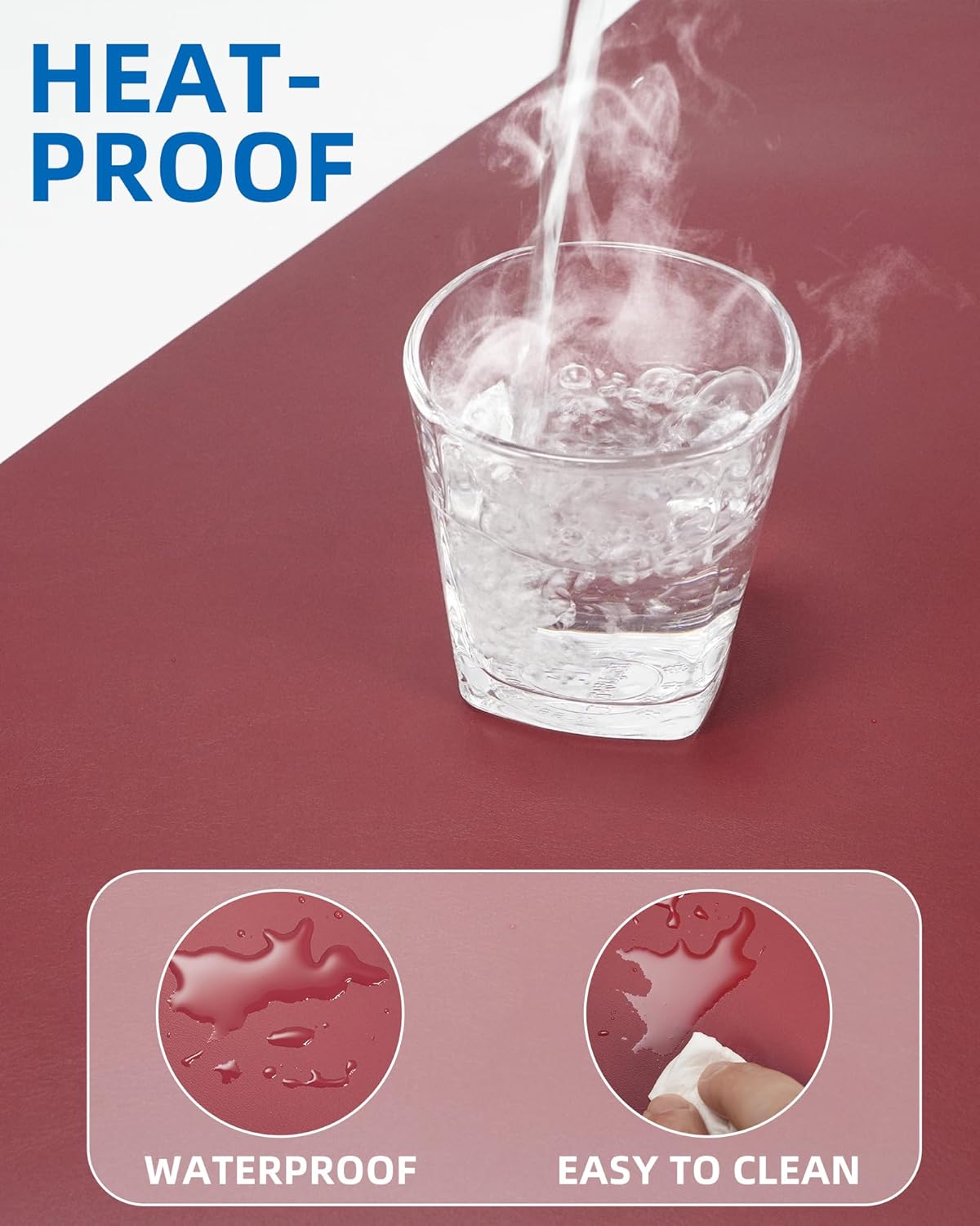 - Waterproof And Easy To Clean: Made of water-resistant and durable PU leather, this desk pad protects your desktop from spilled water, drinks, ink and the other liquid. Easy to clean, just wipe with a wet cloth or paper.