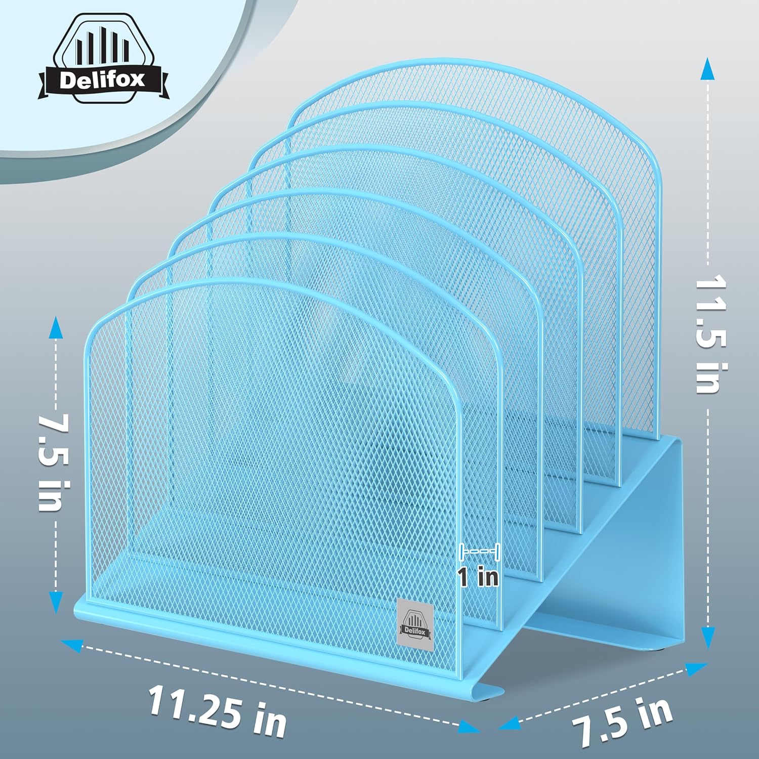 1Pack Inclined Desk File Organizer, 5-Section Vertical File Folder Holder Stand Metal Rack File Sorter for Office Classroom Desktop Organization,Blue