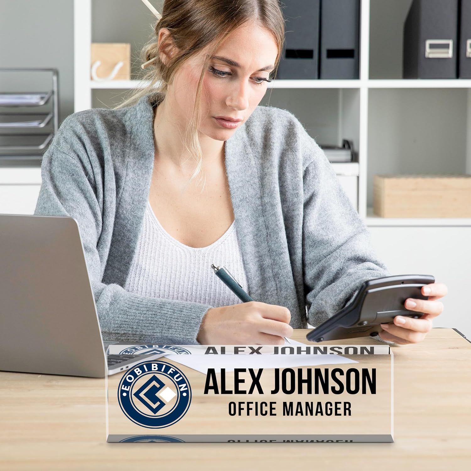 Personalized Name Plate for Desks, Custom Desk Name Plates, Acrylic Name Plate Office Desk Accessories, Personalized Office Gifts for Coworkers Teachers, Employee Appreciation Gifts (B-BusinessLogo)