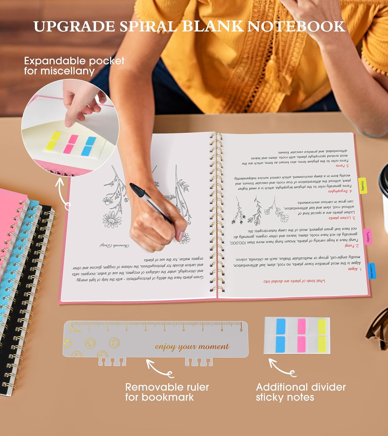 - 【A4 Blank Spiral Journal Notebook】 Large a4 size 8.5"x11" blank notebook, standard 7mm space classic sketch book journals. The professional sturdy water-resistant plastic hard cover will protect your notebooks to last for years, which has oil-resistant and anti-bending properties, effectively protecting the internal paper of the journal and provides a comfortable writing surface.