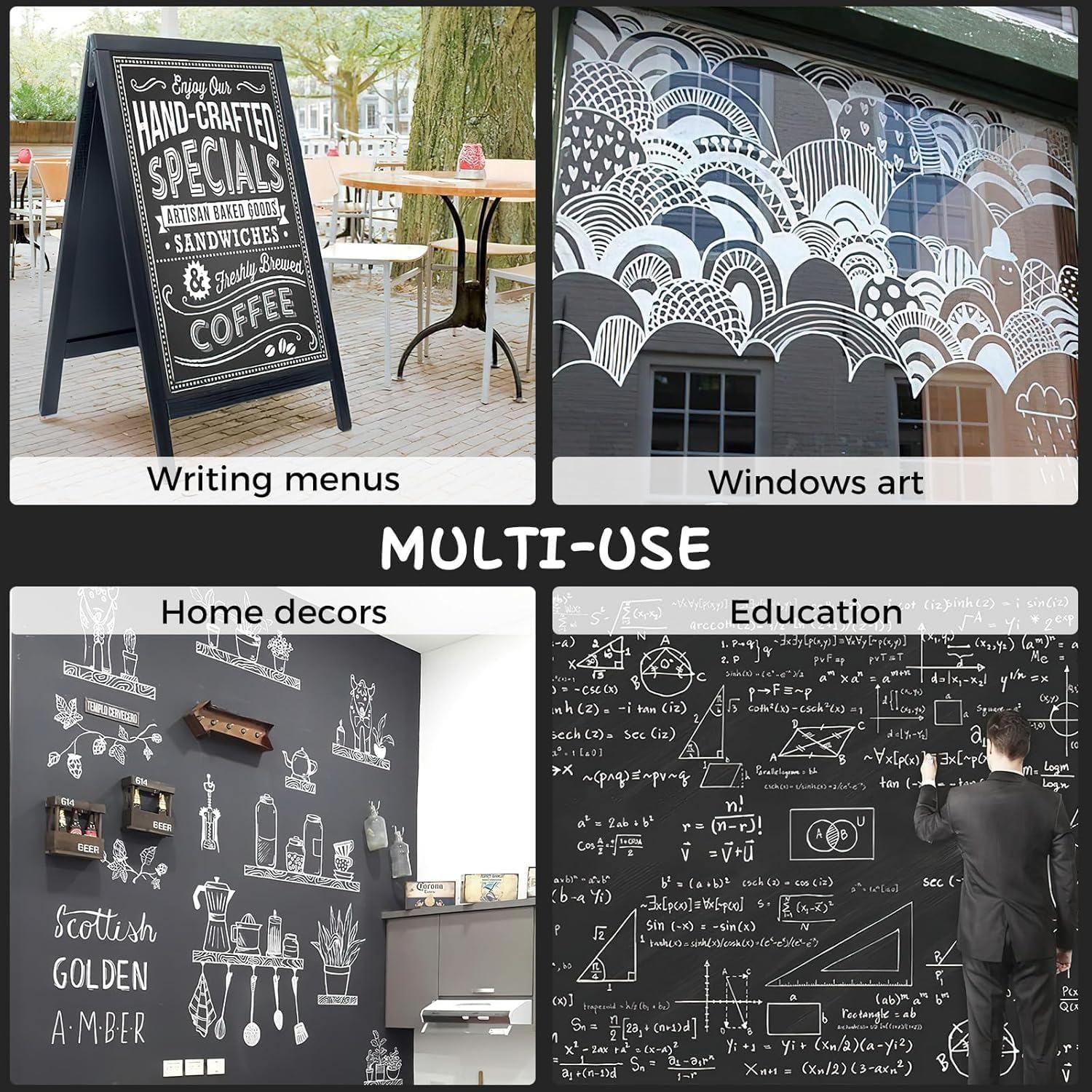 - WIDELY USED: These wet erase markers are suitable for writing on any primed chalkboard, glass or other non-porous surfaces, including black dry erase boards, chalkboard stickers, chalkboard contact paper, tiles, LED boards, whiteboards, plastics and metals. It is also great window markers and dry erase markers for chalk lettering, sewing, decorating wedding signs, milestone boards, menus.