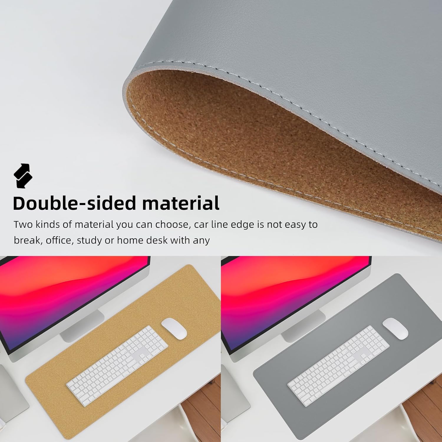 - Double-Sided Design: Choose between two different materials to match your desk and enjoy the high-quality stitching that adds durability and a touch of sophistication to your table mat.
