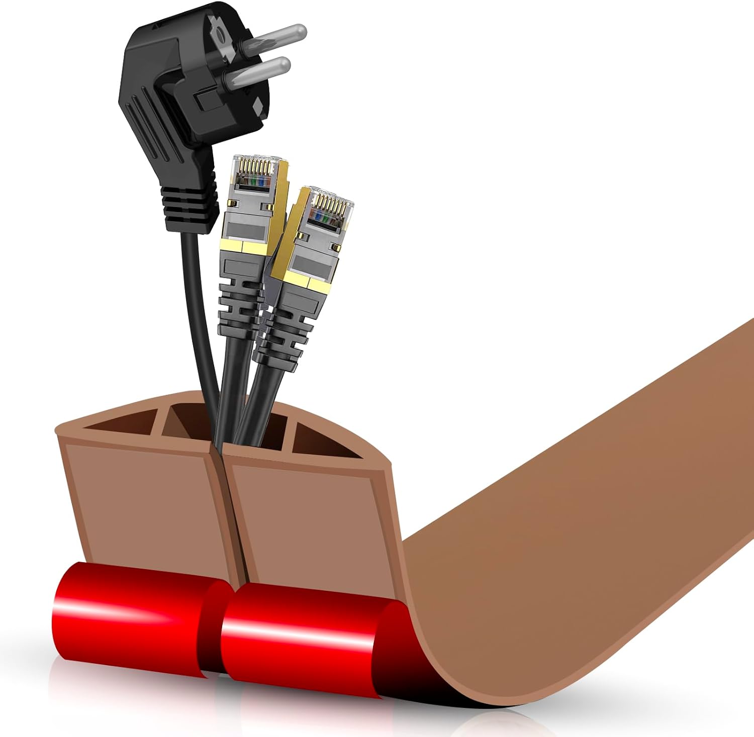 Floor Cord Cover Self Adhesive Cord Hider,3.3FT Cable Management, Extension Strip Protector for Wires, Prevent Cable Trips for Offices, Gyms, Exhibitions Cavity:0.51"(W) x 0.3"(H) Brown