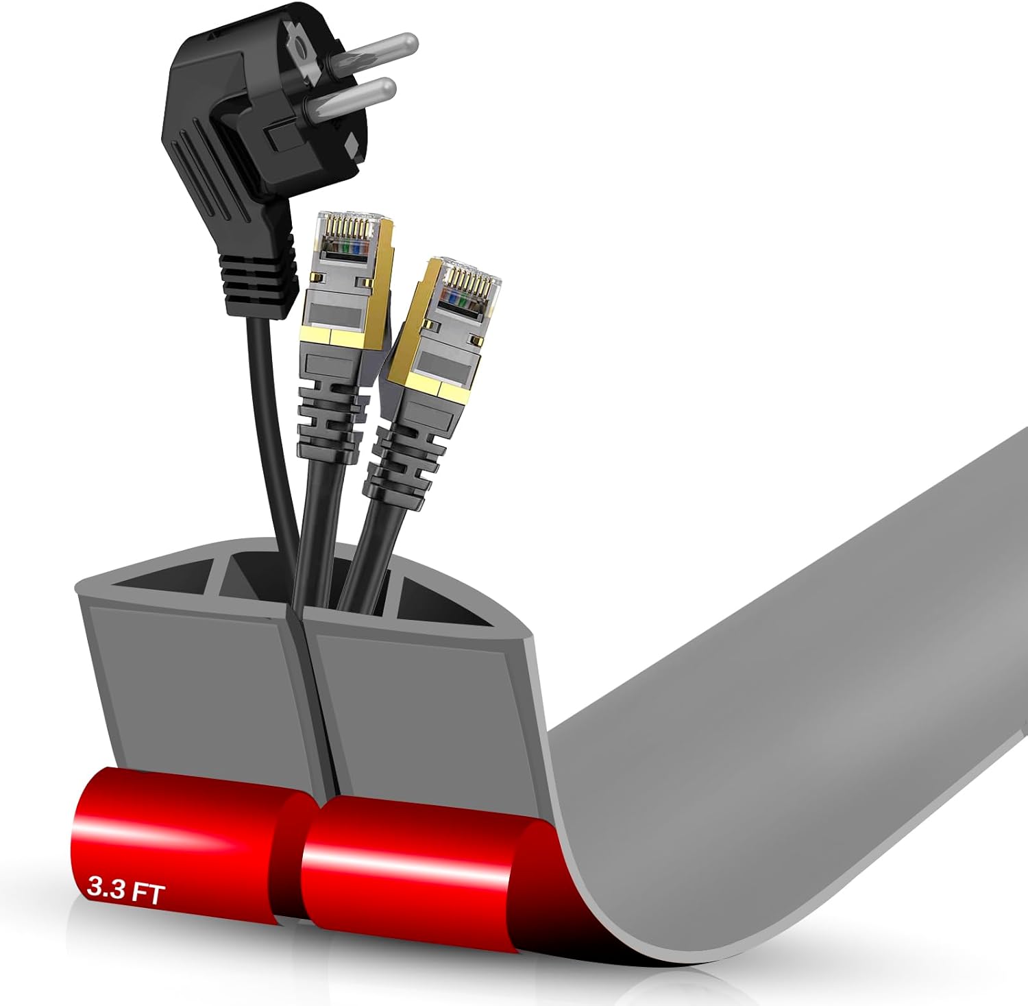 Floor Cord Cover Self Adhesive Cord Hider,3.3FT Cable Management, Extension Strip Protector for Wires, Prevent Cable Trips for Offices, Gyms, Exhibitions Cavity:0.51"(W) x 0.3"(H) Gray