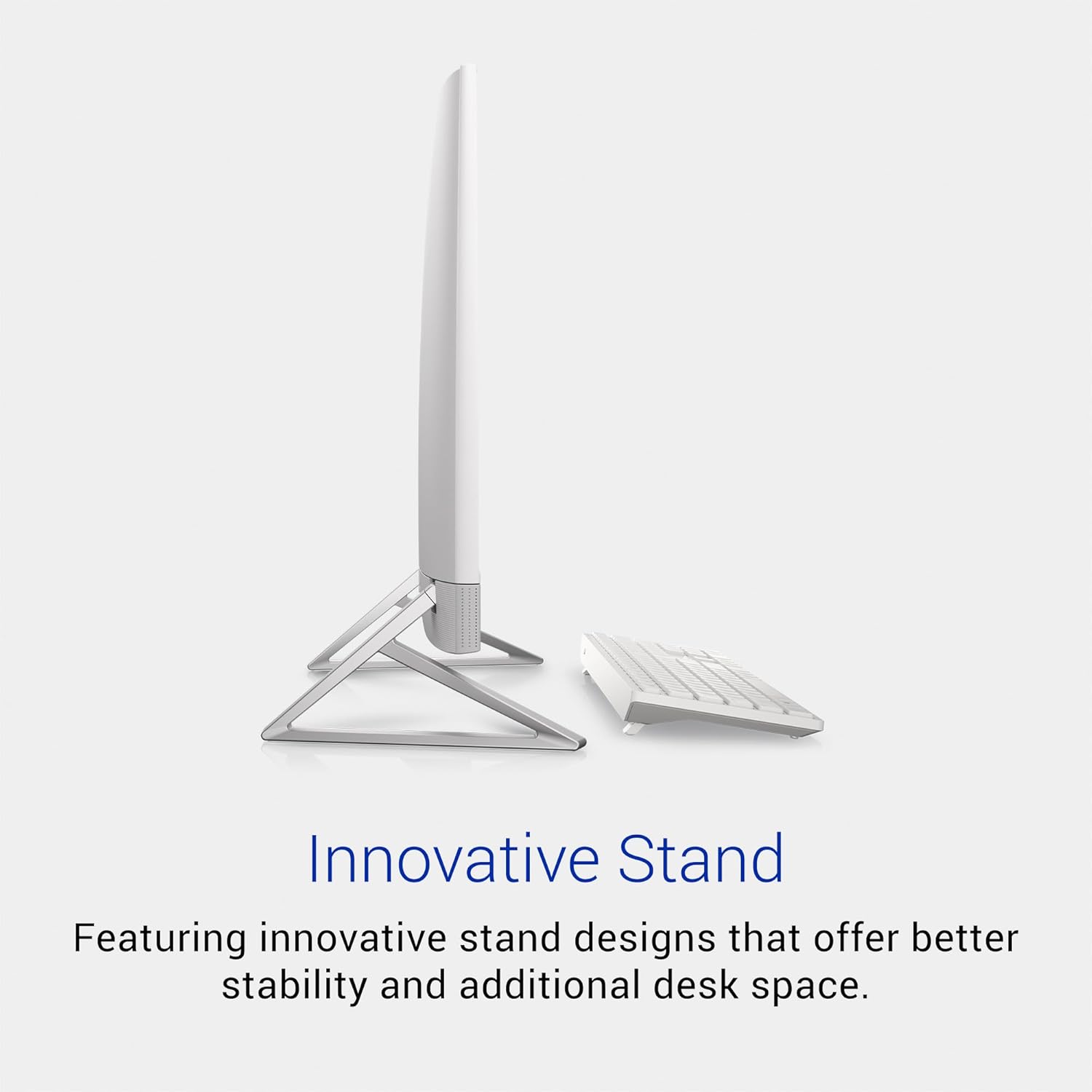 - Optimize workspace: Keep your area clutter free with an innovative stand that has the perfect keyboard parking space underneath the display.
