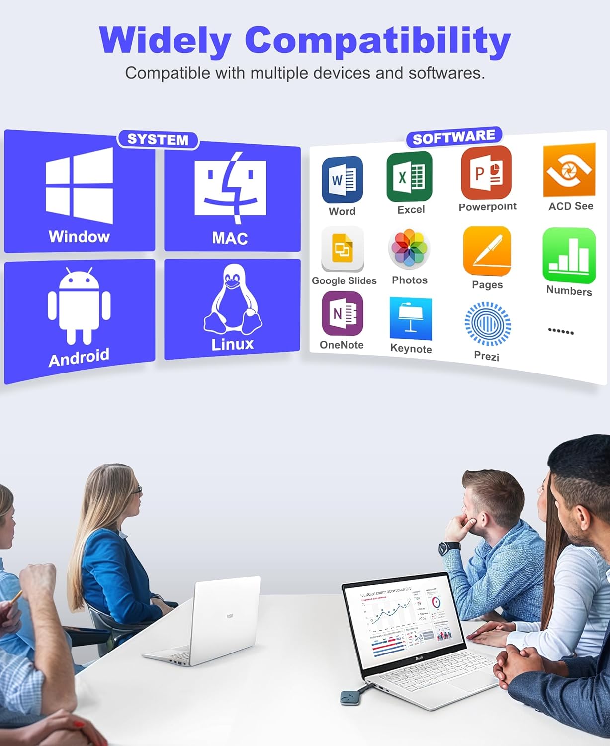 - 【PRESENTATION CLICKER】Clicker for powerpoint presentations supports Page Up/Down, Switch Windows, Full Screen/Black Screen, Volume Control, Handwritten Annotation/Full Screen Erasure, and a Countdown Timer. The computer clicker for presentations can compatible with various devices and software, meeting all your presentation needs. (Please note: full screen functionality is not supported on MAC)