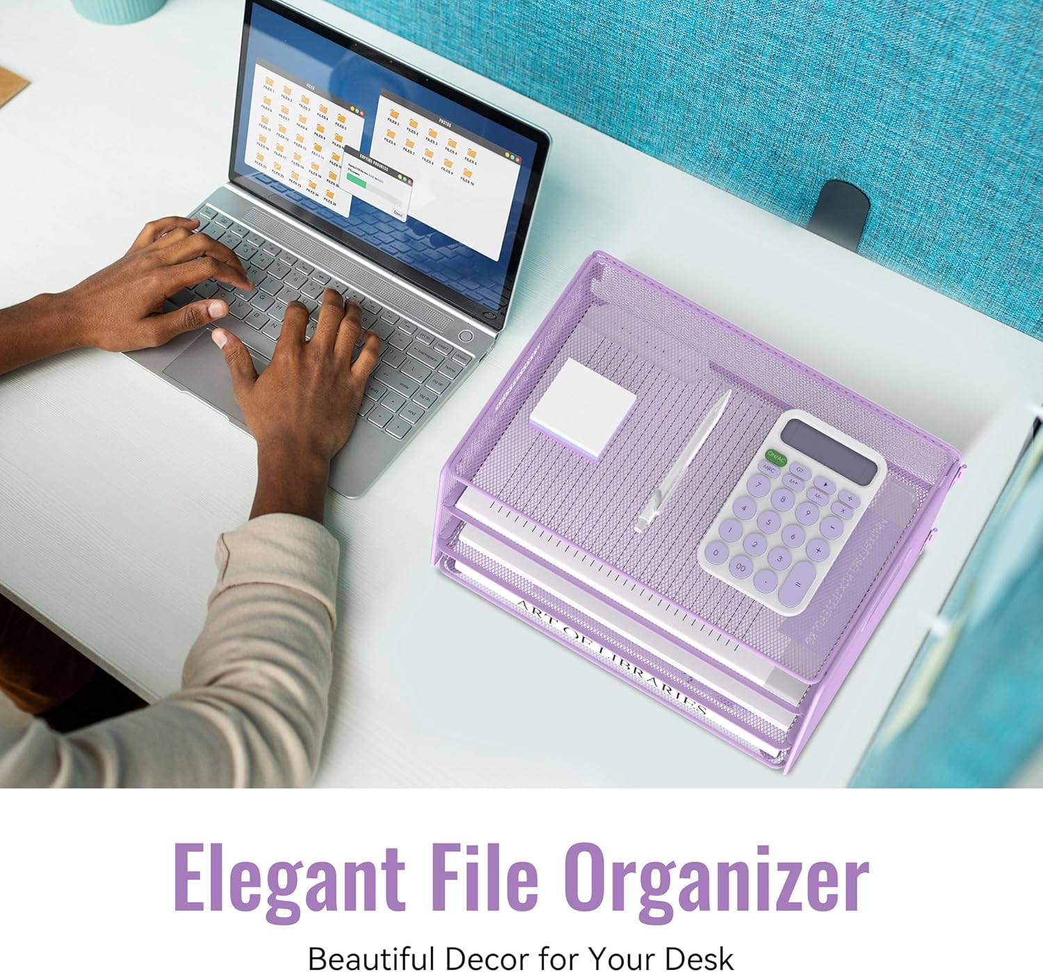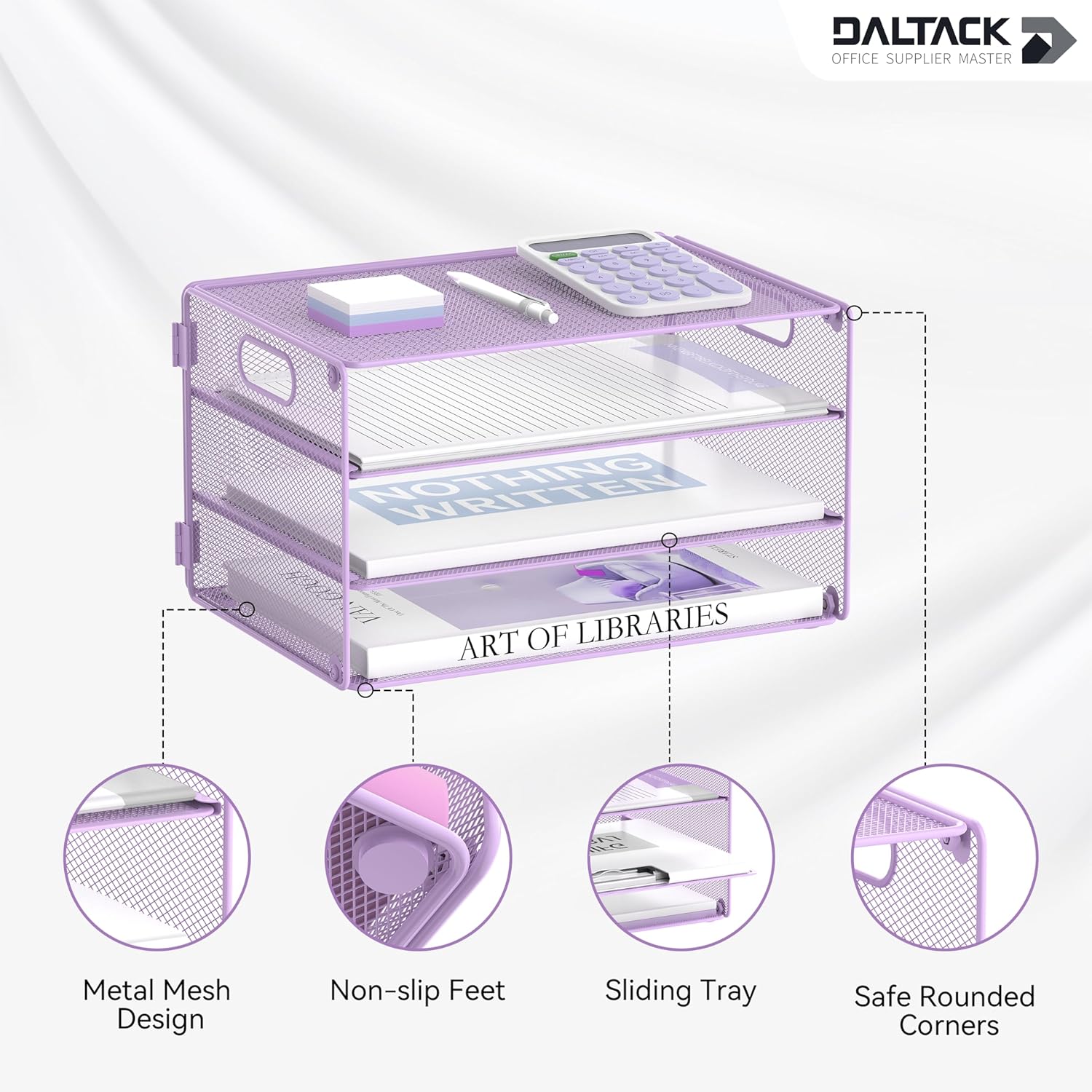 - 3-Tier Design: Daltack 3 tier purple desk organizer tray is a wonderful desktop paper organizer for your office, home, school, or dorm. Our paper organizer for desk is simple and stylish, keep your desk organized in a different new way.