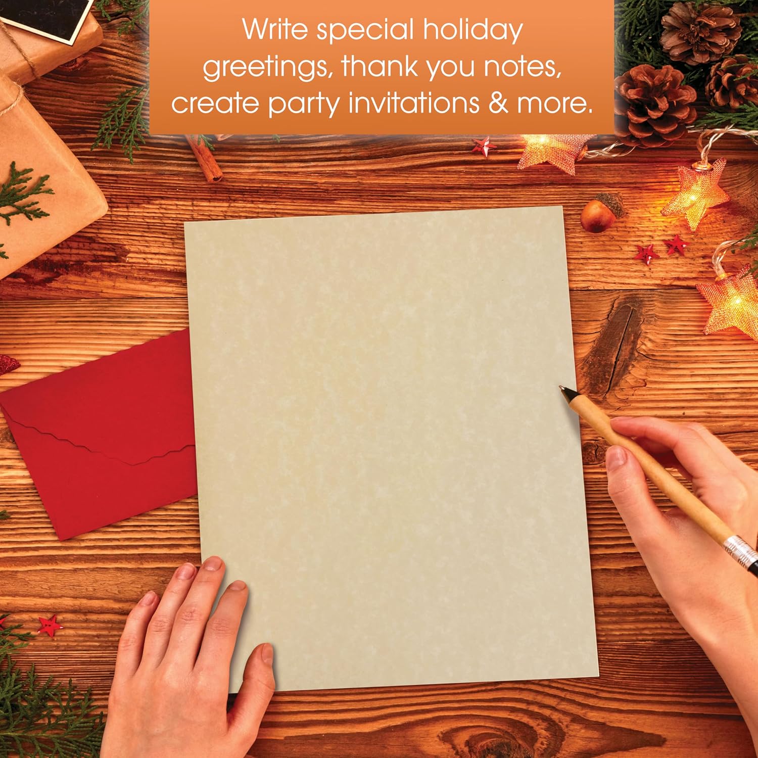 - BULK PACK: 96 Sheets of high-quality ivory-colored textured faux parchment paper