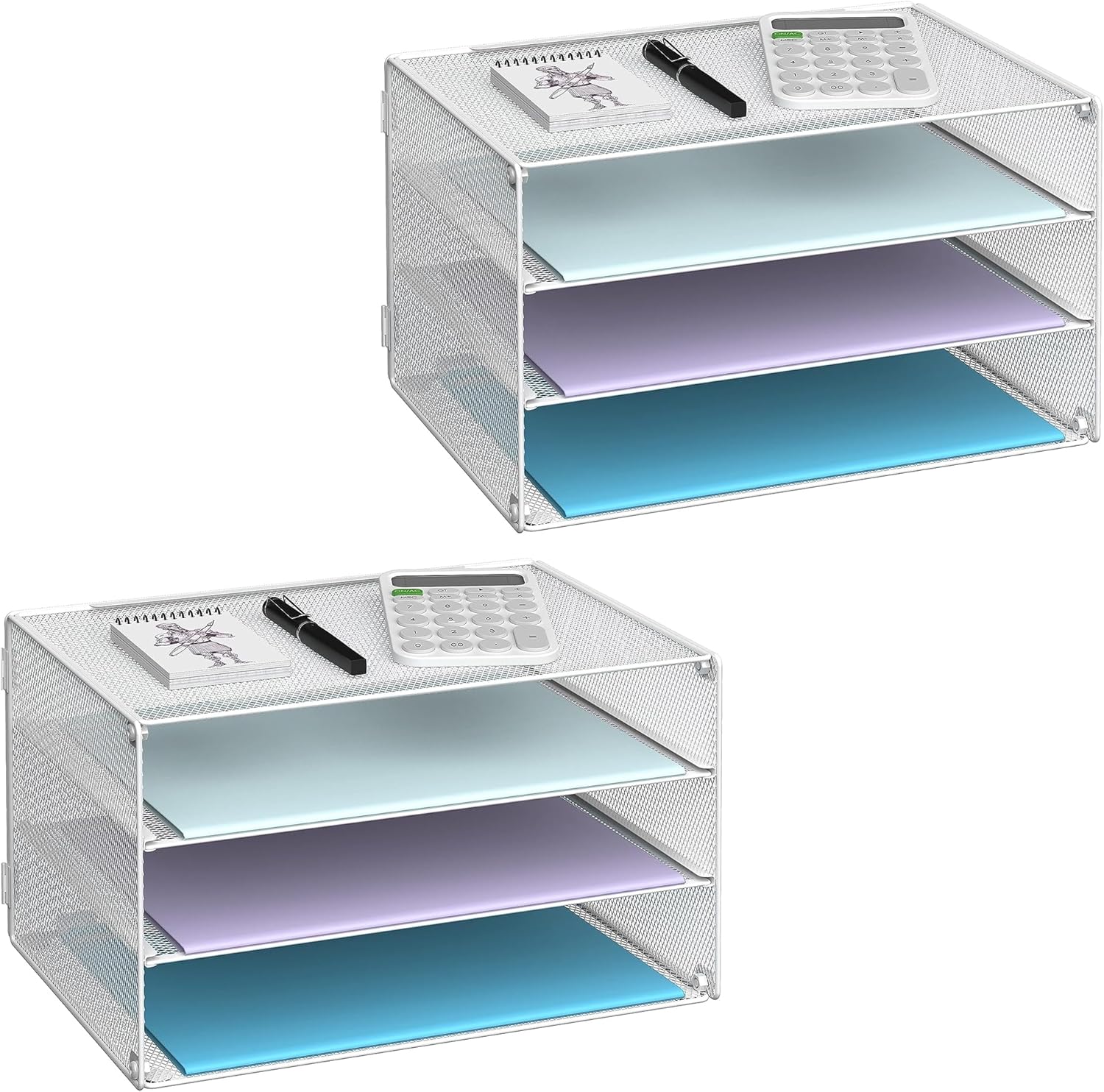 DALTACK 3 Tier Letter Tray Paper Organizer Mesh Metal Desk File Organizer for Home & Office, White 2 Pack