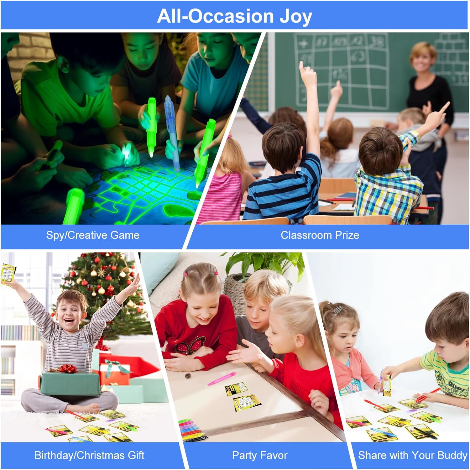 - All-Occasion Gift Set: A hit at birthday parties, Valentine's Day, Classroom prize, Halloween treats, or Christmas stocking stuffers, Goodie bag stuffers, these UV pen sets are the go-to for educational and fun party favors.