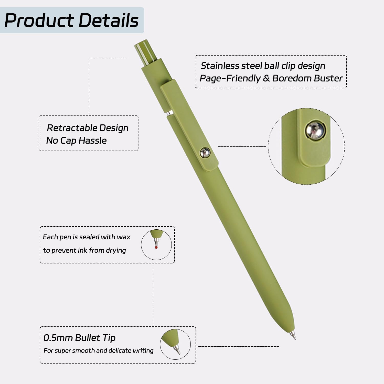 - [0.5mm Fine Point] 0.5mm black ink pens fine point smooth writing pens, writes small and clear, the pens guarantee bold and legible writing, suitable for both professional and personal use.