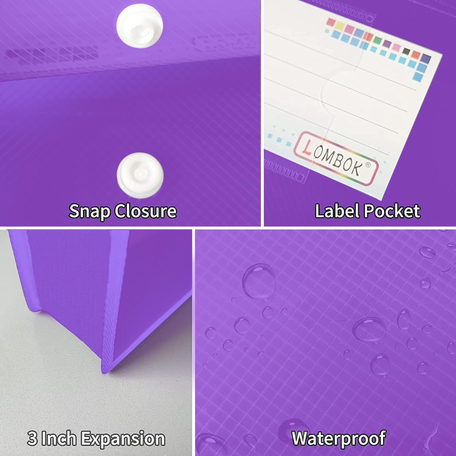 YoeeJob Plastic File Folders Legal Size Expandable Document Folder with Snap Button Closure, A4 Expanding File Wallet Envelopes Pouch with Label Pocket, 2 Packs, Purple