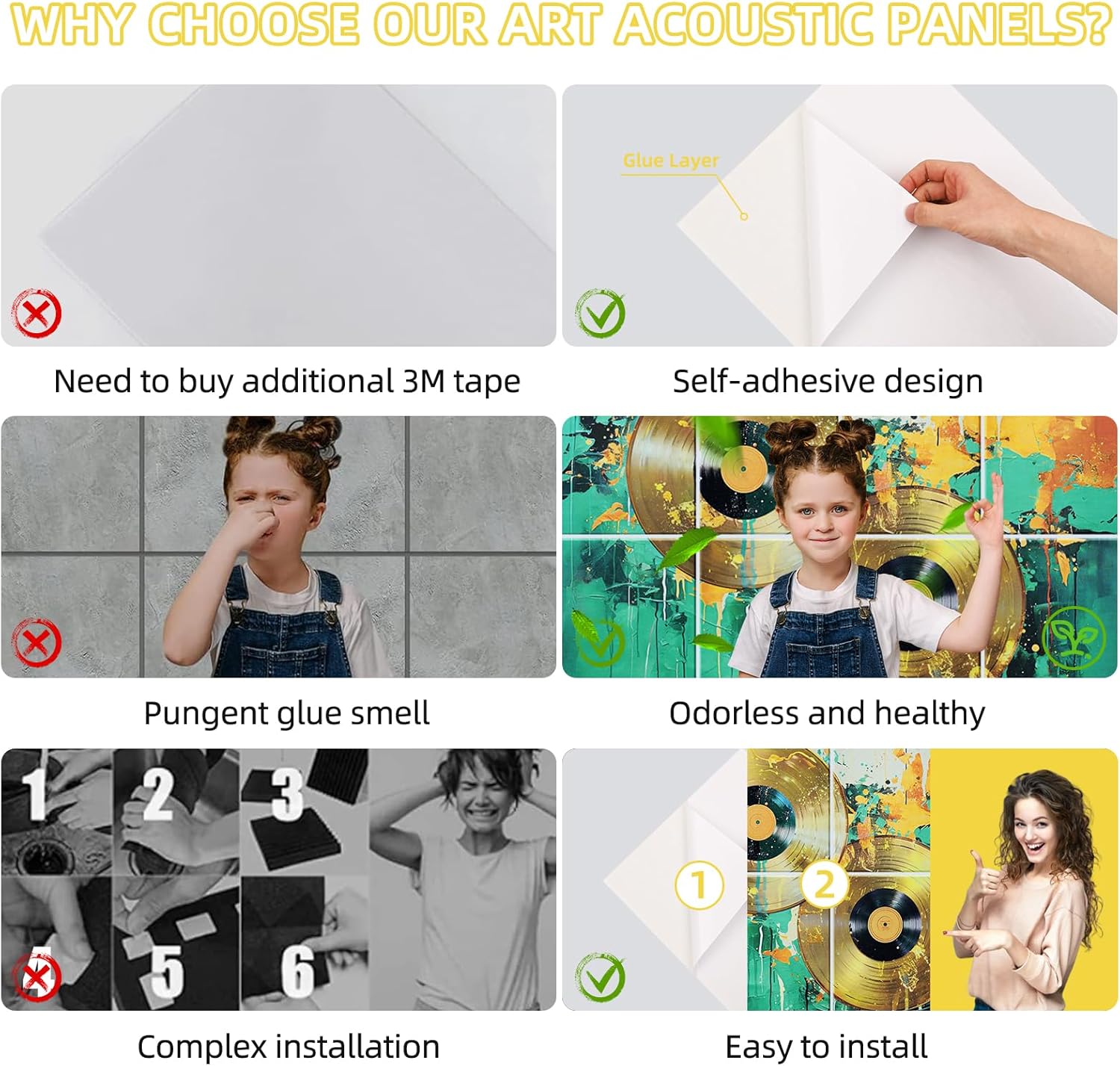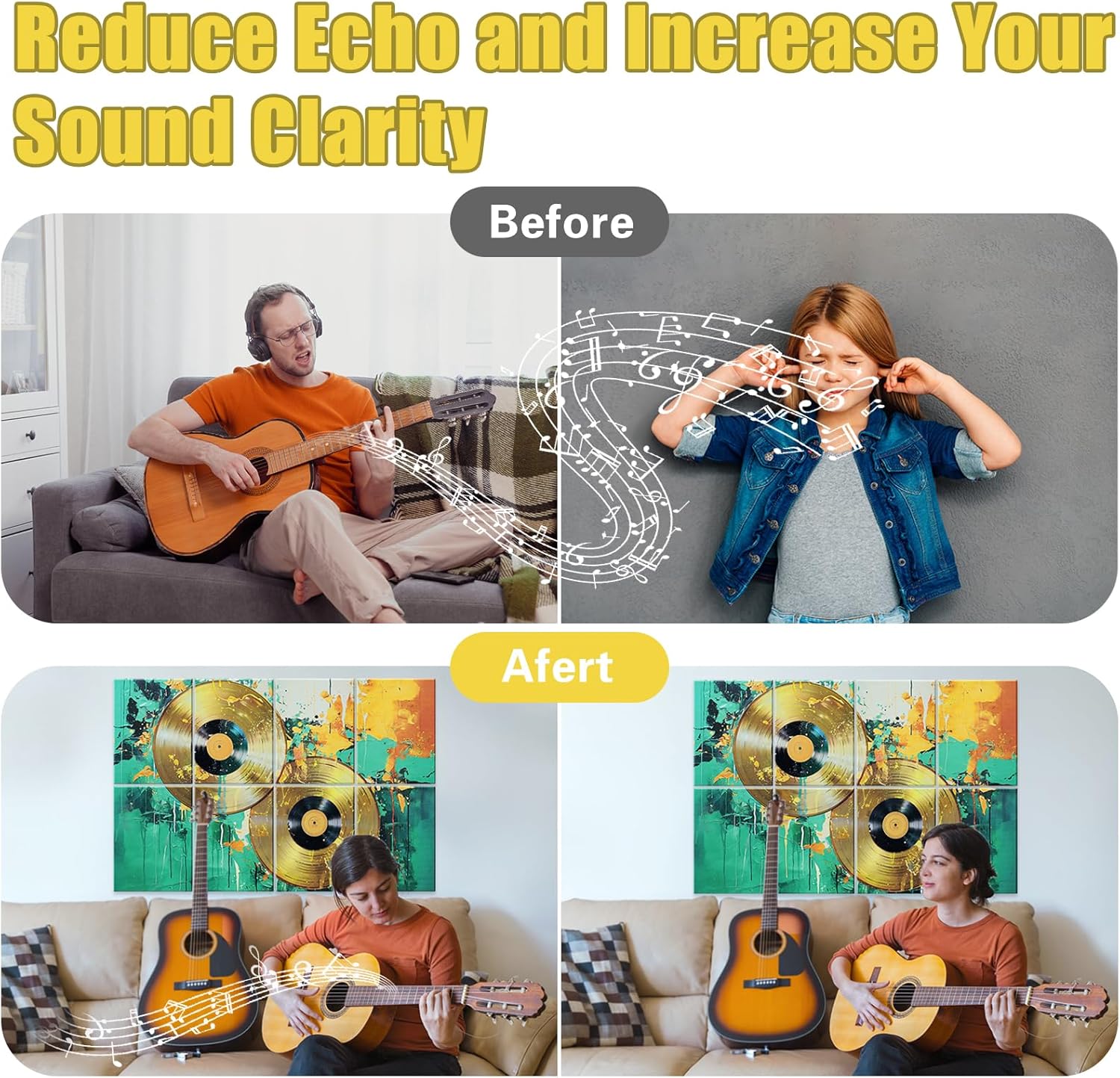 - EFFICIENT ACOUSTIC TREATMENT: Our art acoustic panels are 9.4 lb/ft3 density, noise reduction coefficient: >0.92 and absorption coefficient: 0.8, provide exceptional sound absorption, minimizing reverberations and echoes, improve sound effects and speech intelligibility.