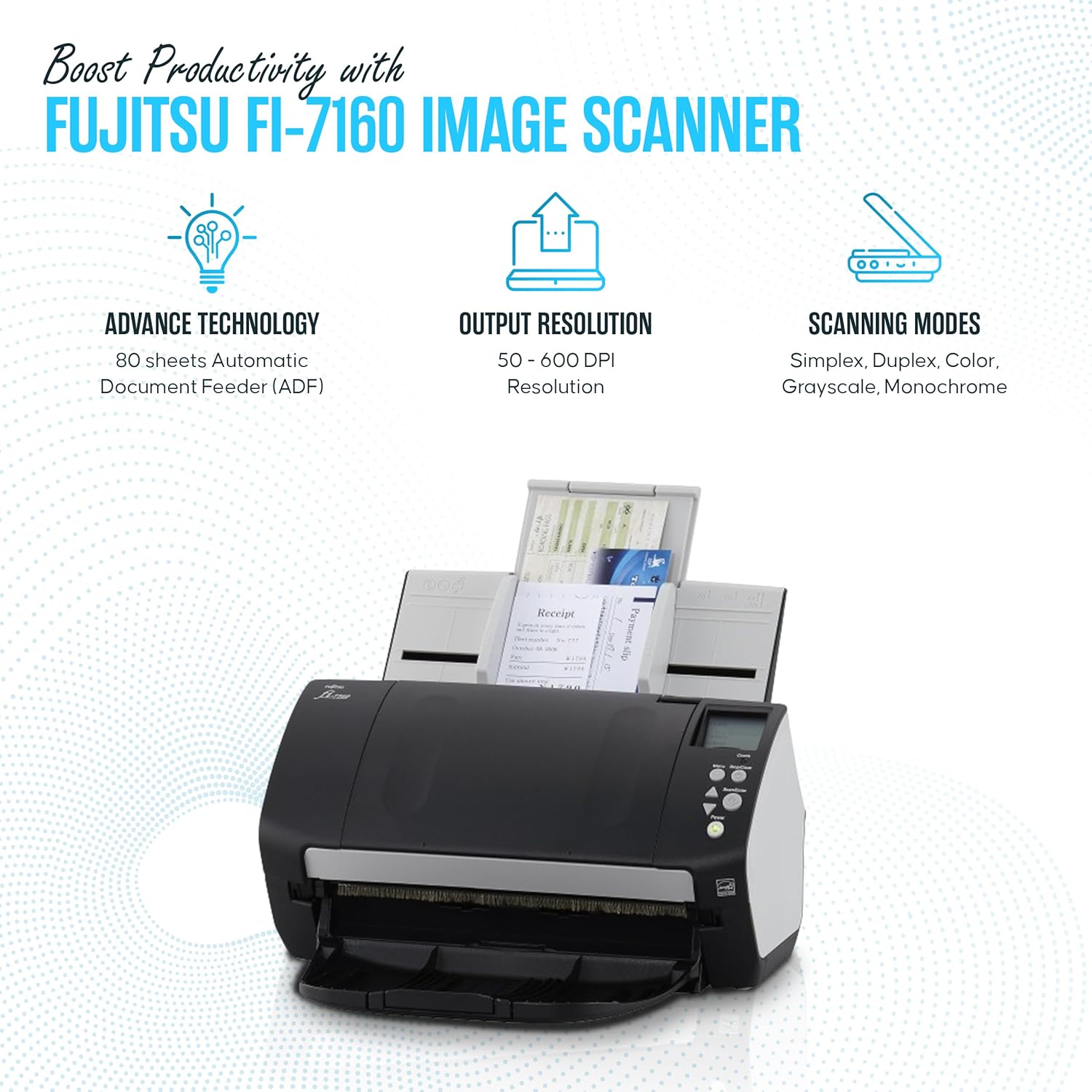 FI-7160 Fujitsu Document Scanner - Duplex - Scanners for Computers with 24V & USB 3.0 Cable, 8.5 X 14 in, 600 DPI, 60 PPM (Mono/Color), ADF, 4000 Scans Per Day (Renewed)