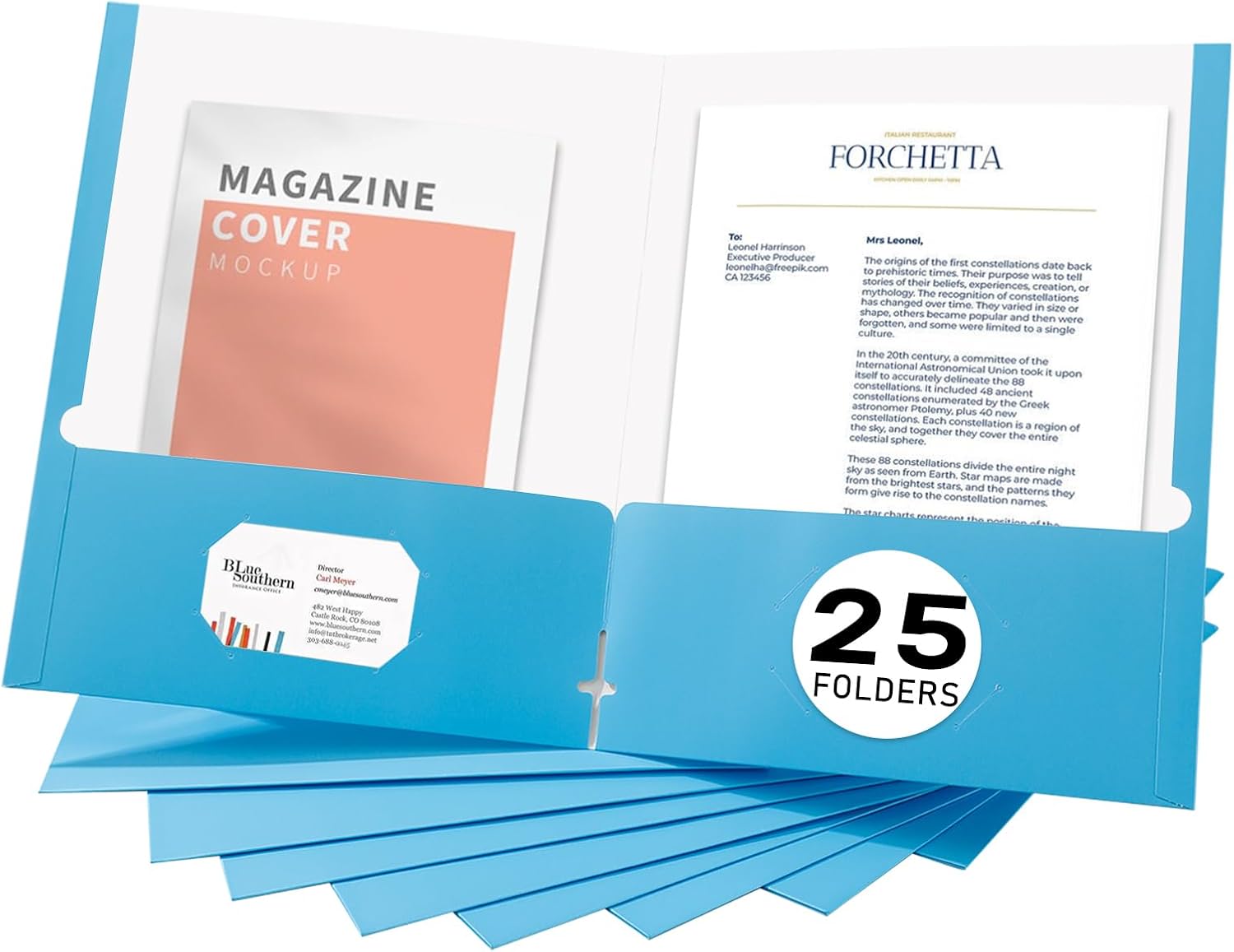 - PACKAGE INCLUDES: 25 packs light blue file folders with 2 pocket folders and 2 business card slot, 100 plus Sheet Capacity, enough use for you, perfect for school, paperwork, office, business.