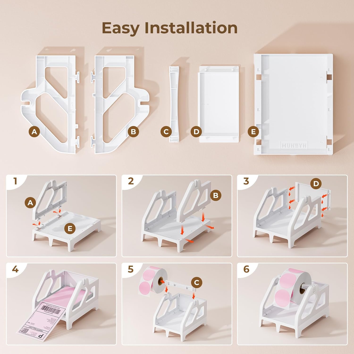 - Quick Installation: MUNBYN Label Holder is easy to assemble and disassemble, with only 5 parts. This label holder is ideal for holding and storing thermal label paper and is ideal for keeping your office desk organized