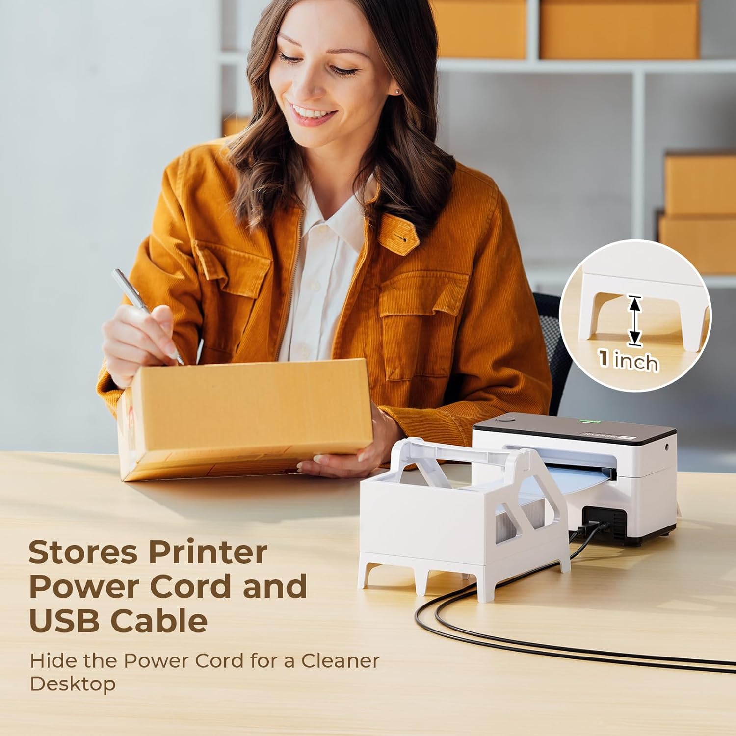 - Unique Design: The taller base of the MUNBYN Label Tray allows the printer's cords to pass beneath the stand without becoming tangled or messed up. Suitable for warehouses, offices, supermarkets, retail stores, factories, delivery services, and pharmacies, amongst other places