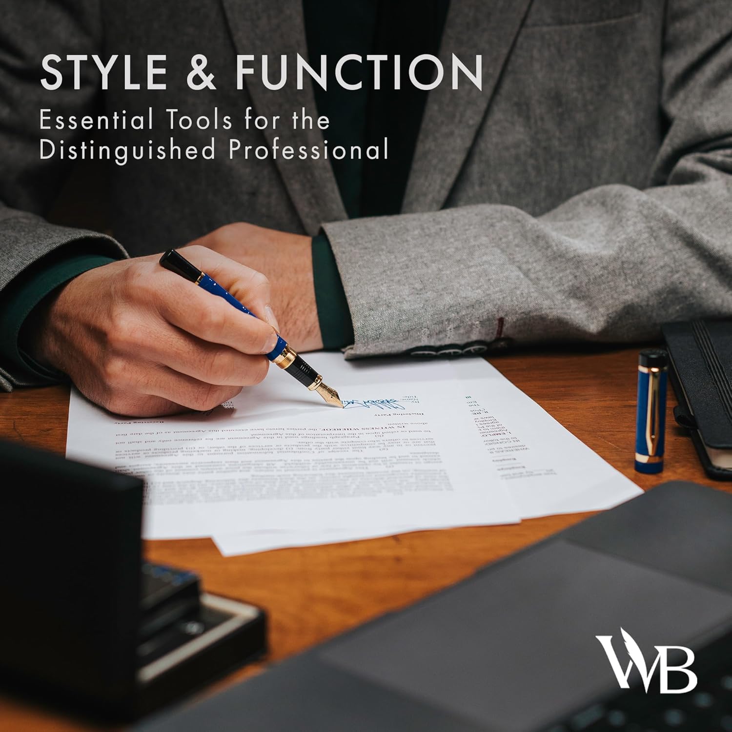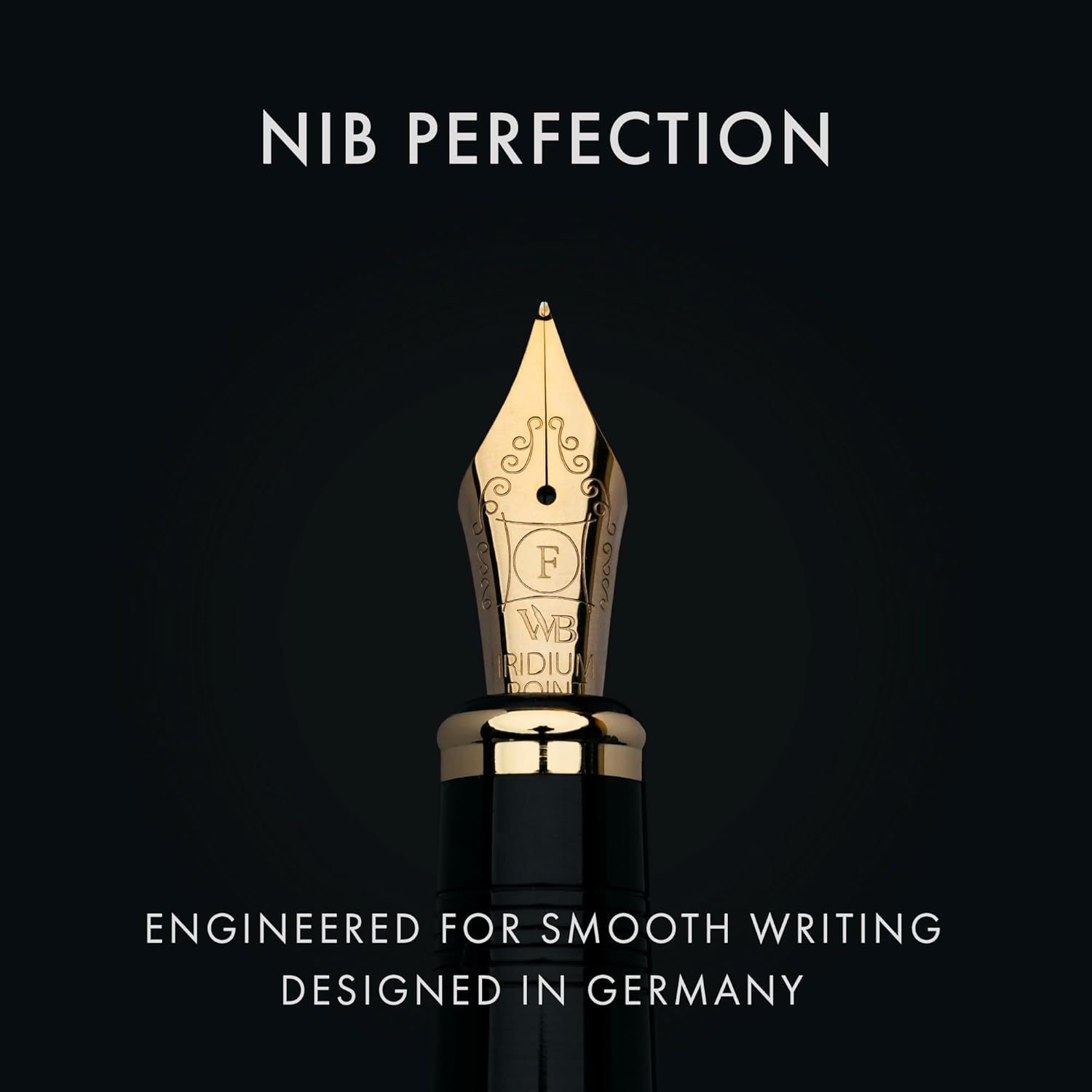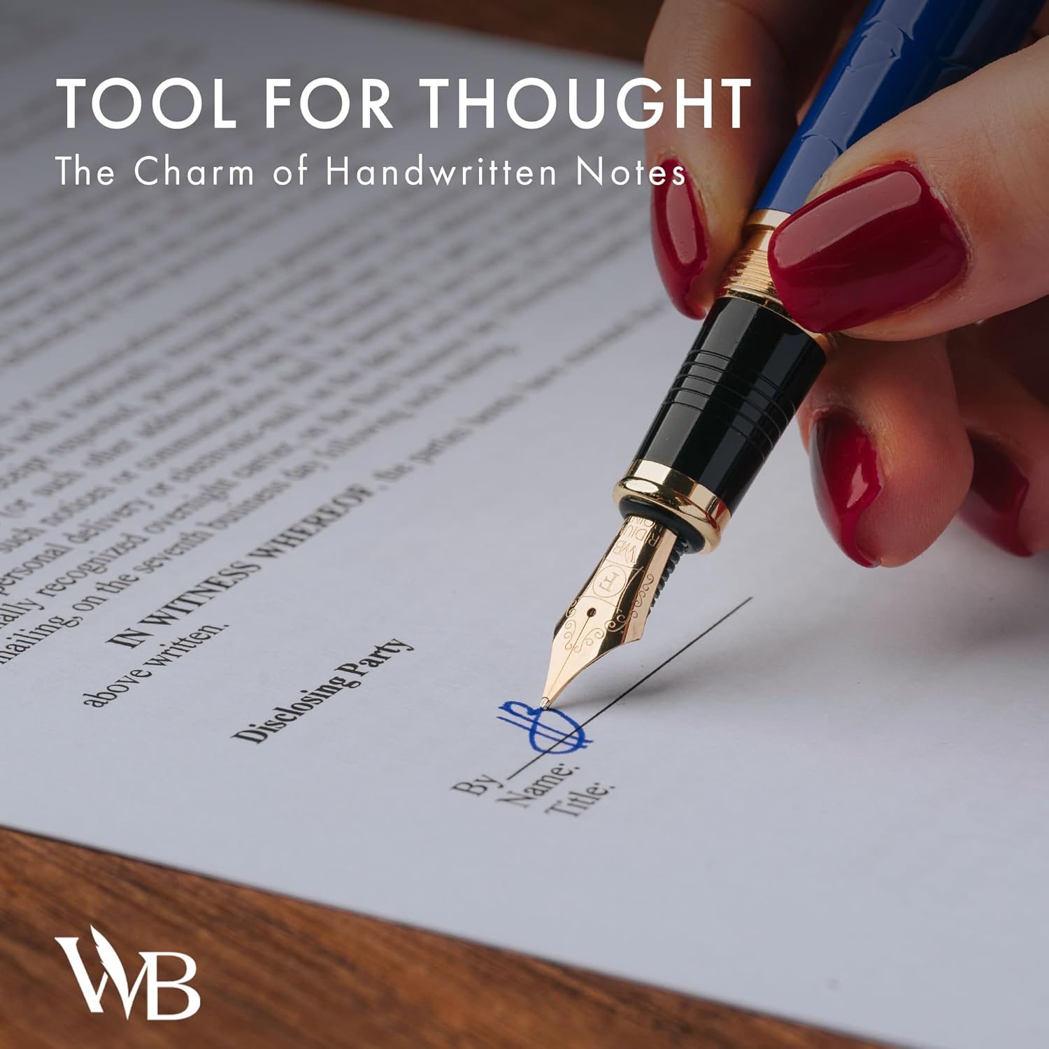 Wordsworth & Black Primori Fountain Pen Set [Blue Gold]; Fine Nib, Gift Case, 24 Ink Cartridges, Refill Converter, Manual; Journaling, Calligraphy, Smooth Writing Pens; Left and Right Handed