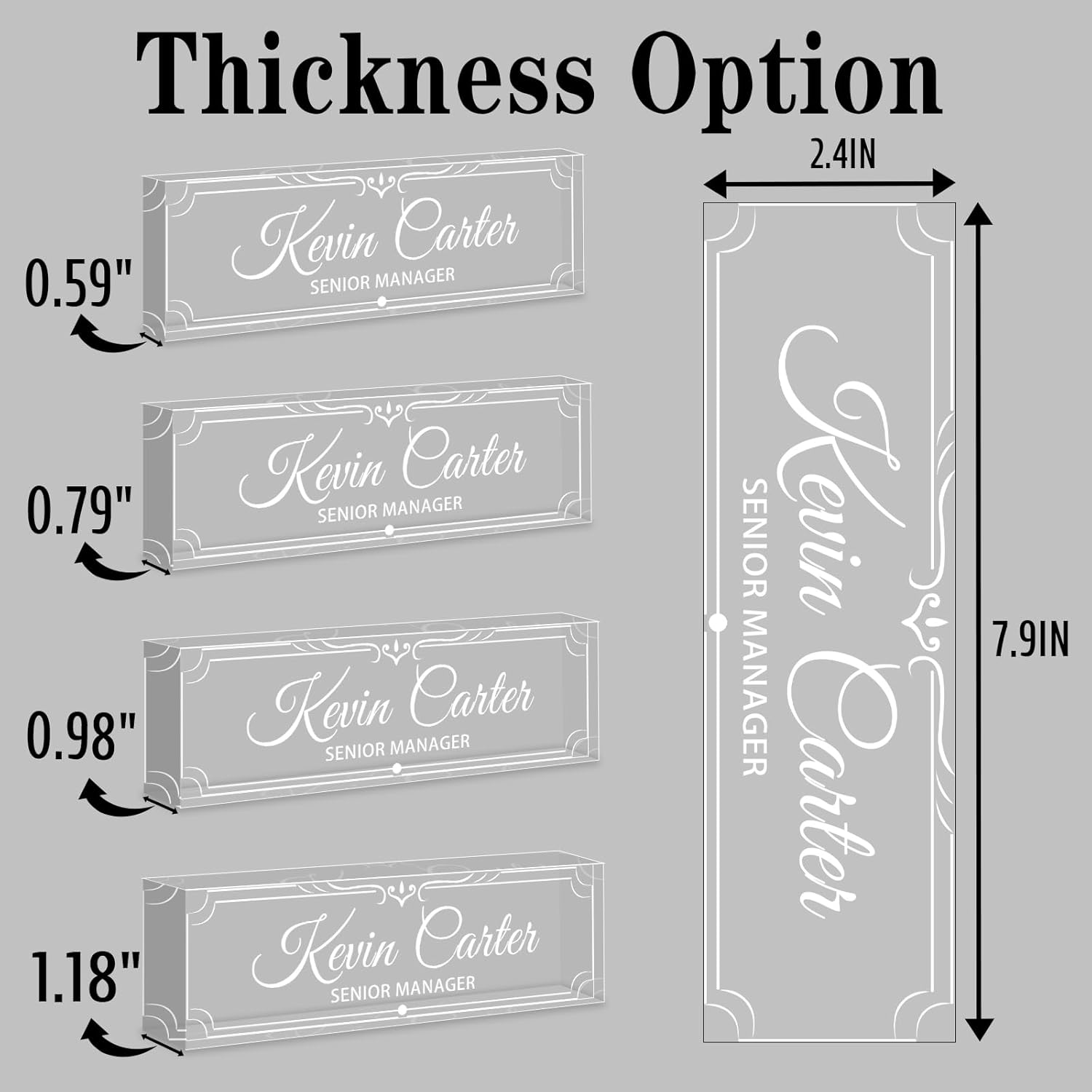 - 【Premium Quality】Crafted from high-quality acrylic glass, this name plate exudes elegance and sophistication. Its sleek and modern design will enhance any desk or workspace, adding a touch of professionalism and style. Transparent block lets UV names and titles show through, creating a visually stunning effect.