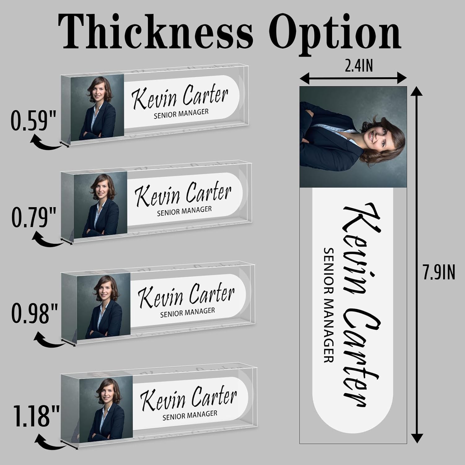 Name Plate for Desk Personalized, Acrylic Desk Decorations, Employee Appreciation Gifts, Custom Office Gifts for Coworkers, Boss, Teacher, Nurse (Photo Style)