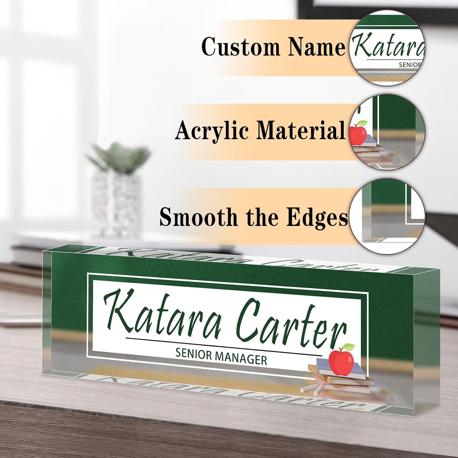 Name Plate for Desk Personalized, Acrylic Desk Decorations, Employee Appreciation Gifts, Custom Office Gifts for Coworkers, Boss, Teacher, Nurse (Teacher 03)