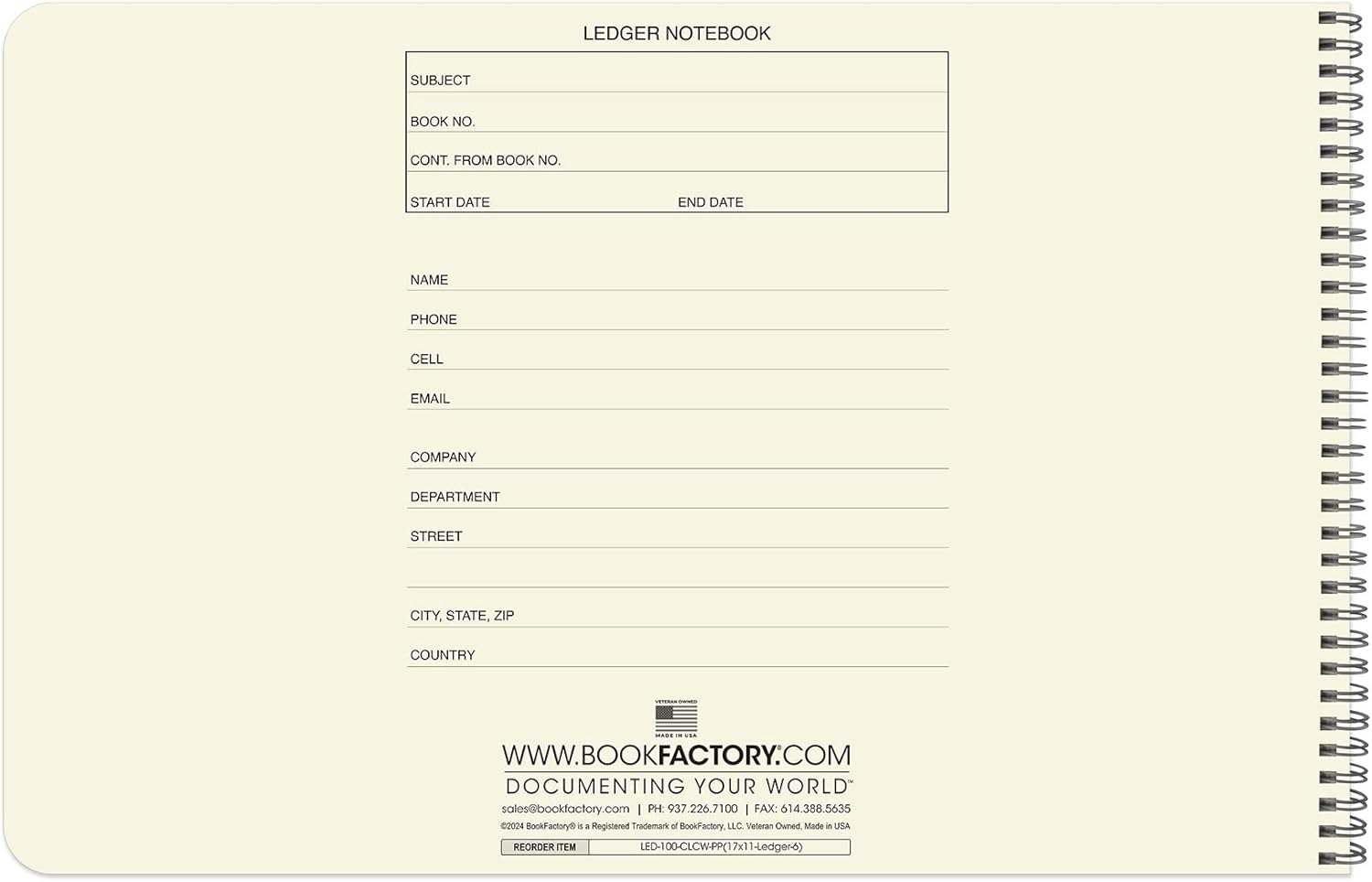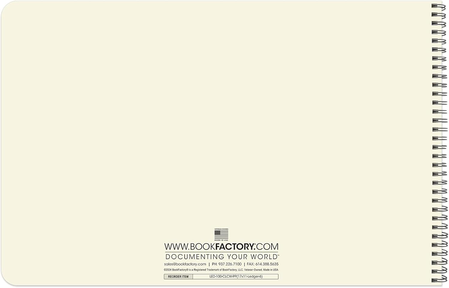 BookFactory Accounting Ledger Notebook/Large 6 Column Accounting Ledger Columnar (Six Columns) Log Book - 17'' x 11'', 100 Pages, Wire-O Landscape Format (LED-100-CLCW-PP(17x11-Ledger-6)-AX)