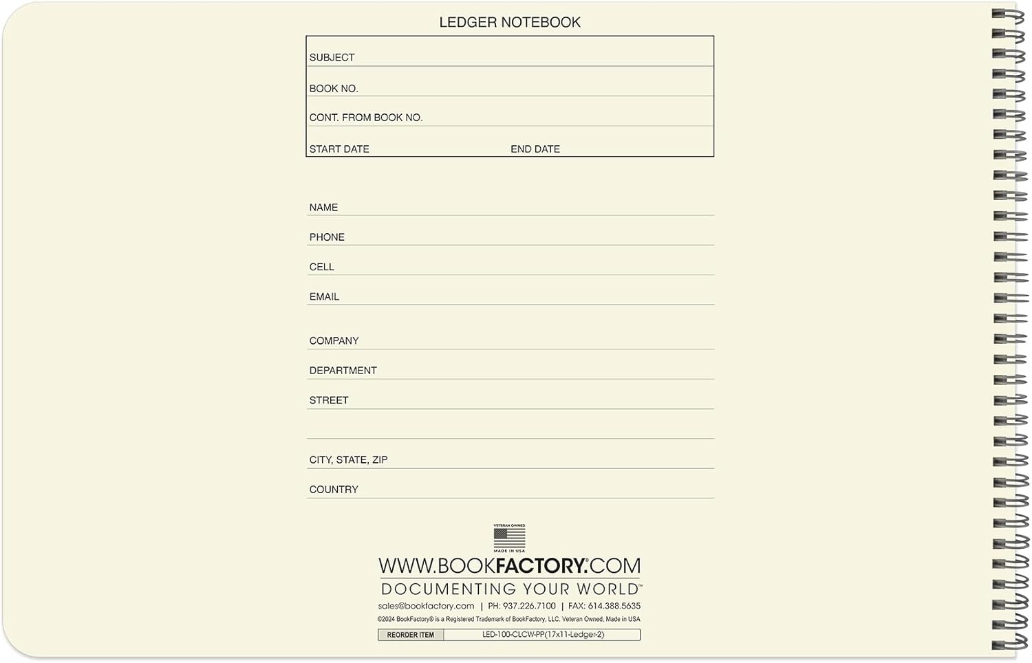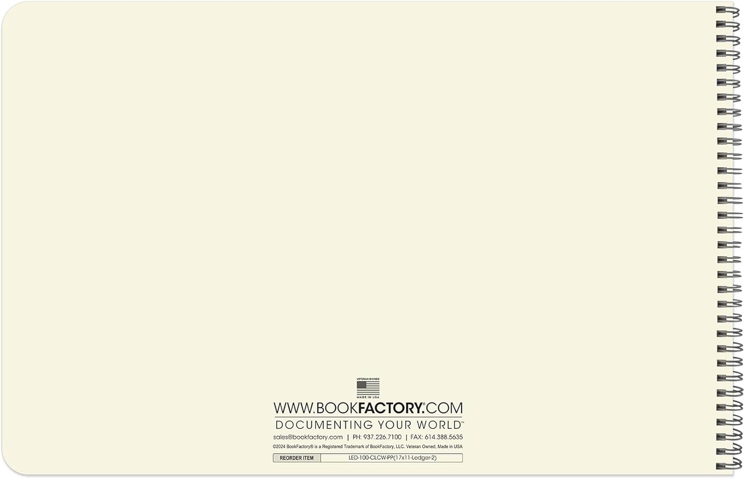 BookFactory Accounting Ledger Notebook/Large 2 Column Accounting Ledger Columnar (Two Columns) Log Book - 17'' x 11'', 100 Pages, Wire-O Landscape Format (LED-100-CLCW-PP(17x11-Ledger-2)-AX)