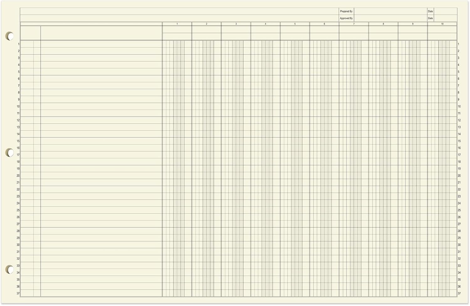 - Three hole punched for binders: There is a three hole punch on the side of these 17" x 11" loose leaf sheets so that you can put these sheets into any three ring binder used in your business. This loose leaf sheet format is the perfect way to integrate your bookkeeping sheets into any organization strategy you already use. The paper is archival quality and acid-free, keeping your financials safe for years.