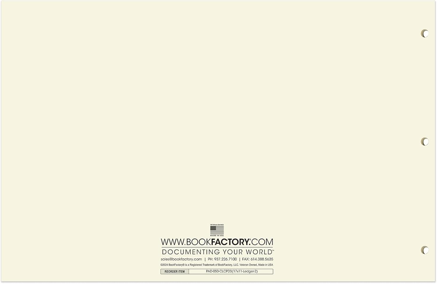 BookFactory Ledger Sheets/Large 2 Column Accounting Ledger Columnar (Two Columns) Loose Leaf Paper - 17'' x 11'', 50 Pages, Loose Leaf, 3 Hole Punched (SHEET-050-CLCLL(17x11-Ledger-2)-AX)