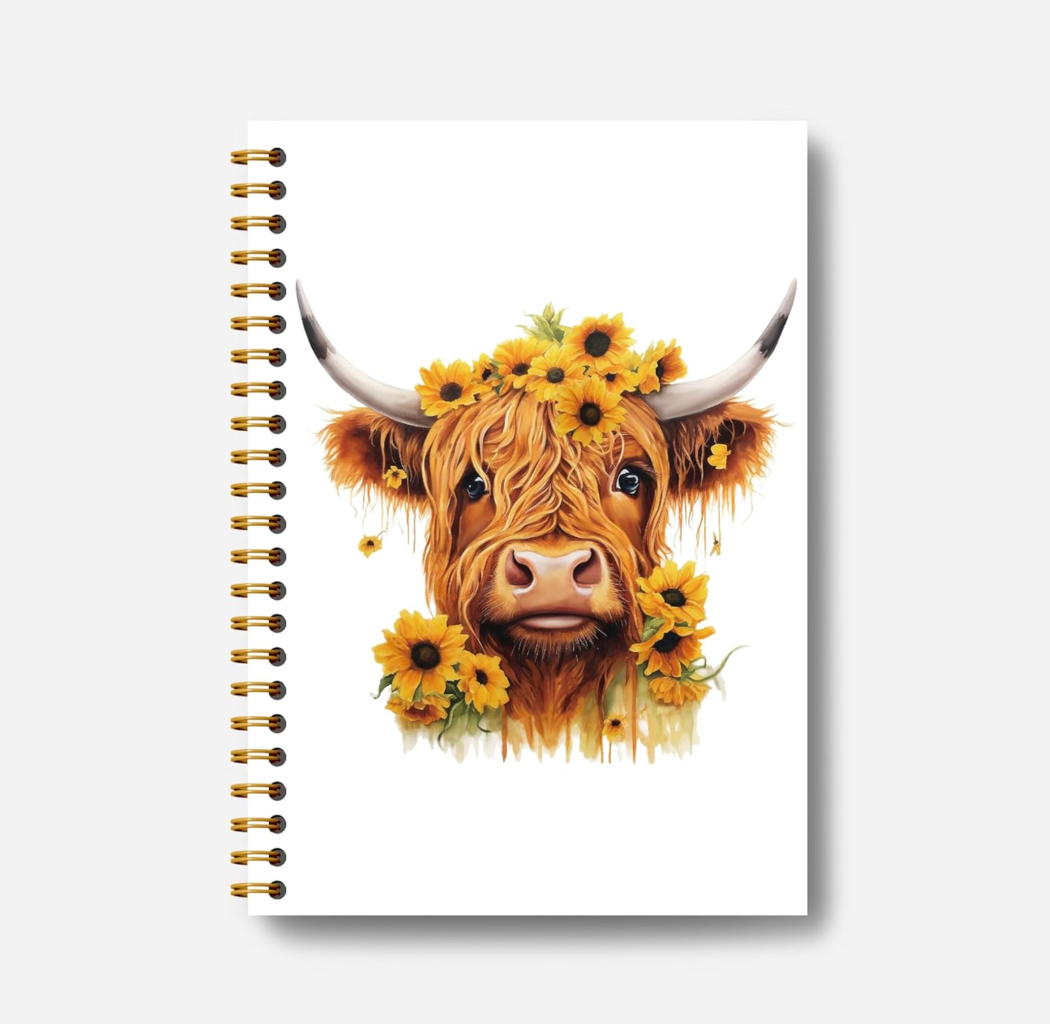 Sunflower Highland Cow Notebook - Western Notebook, Cow Notebook, Highland Cow Office Supplies, Highland Cow Gifts, Cow Stuff, Farmhouse Highland Cows Spiral Notebook 5.5x8.3