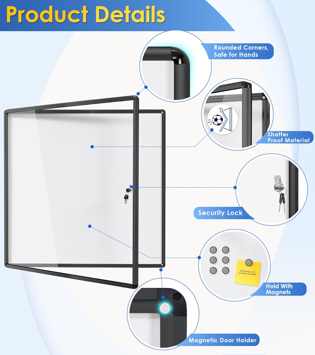 - Secure and Protected Display —Lockable acrylic doors and key mechanisms ensure that important information are kept safe from the elements, theft, or tampering.