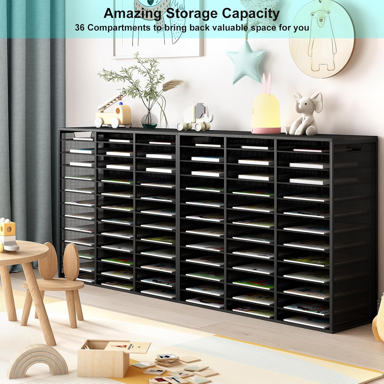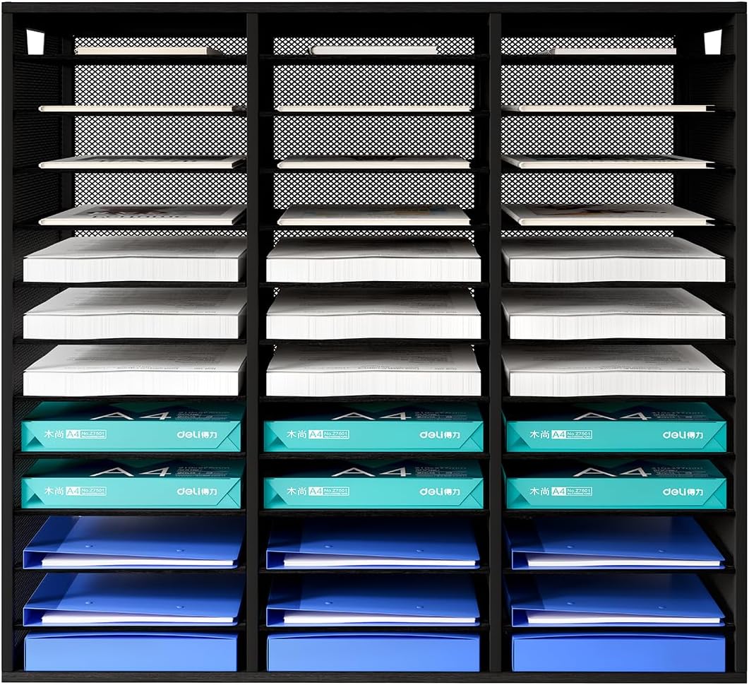 - ▶Amazing Storage Capacity and Space-saving. The literature organizer has 36 compartments, which can help you sort, store and organize literature, magazines, comic books, files, student assignments, binders, catalogs, diaries, papers and documents on your desk or counter quickly and easily and get you valuable workspace back