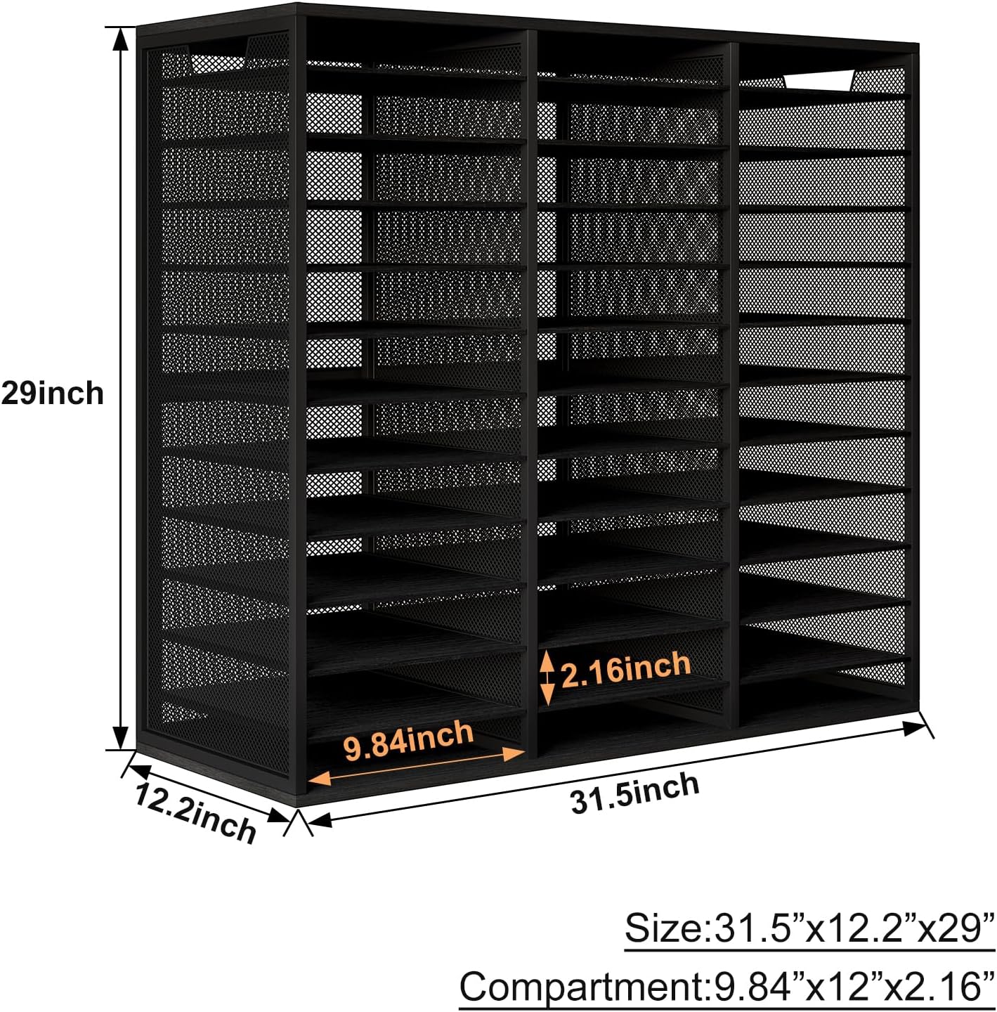Mail Sorter Adjustable Countertop Mail Holder, Heavy Duty Literature Organizer, Student Mailbox for Classroom, Desktop Bill Paper Organizer for Office Home School, 36 Compartments, Black