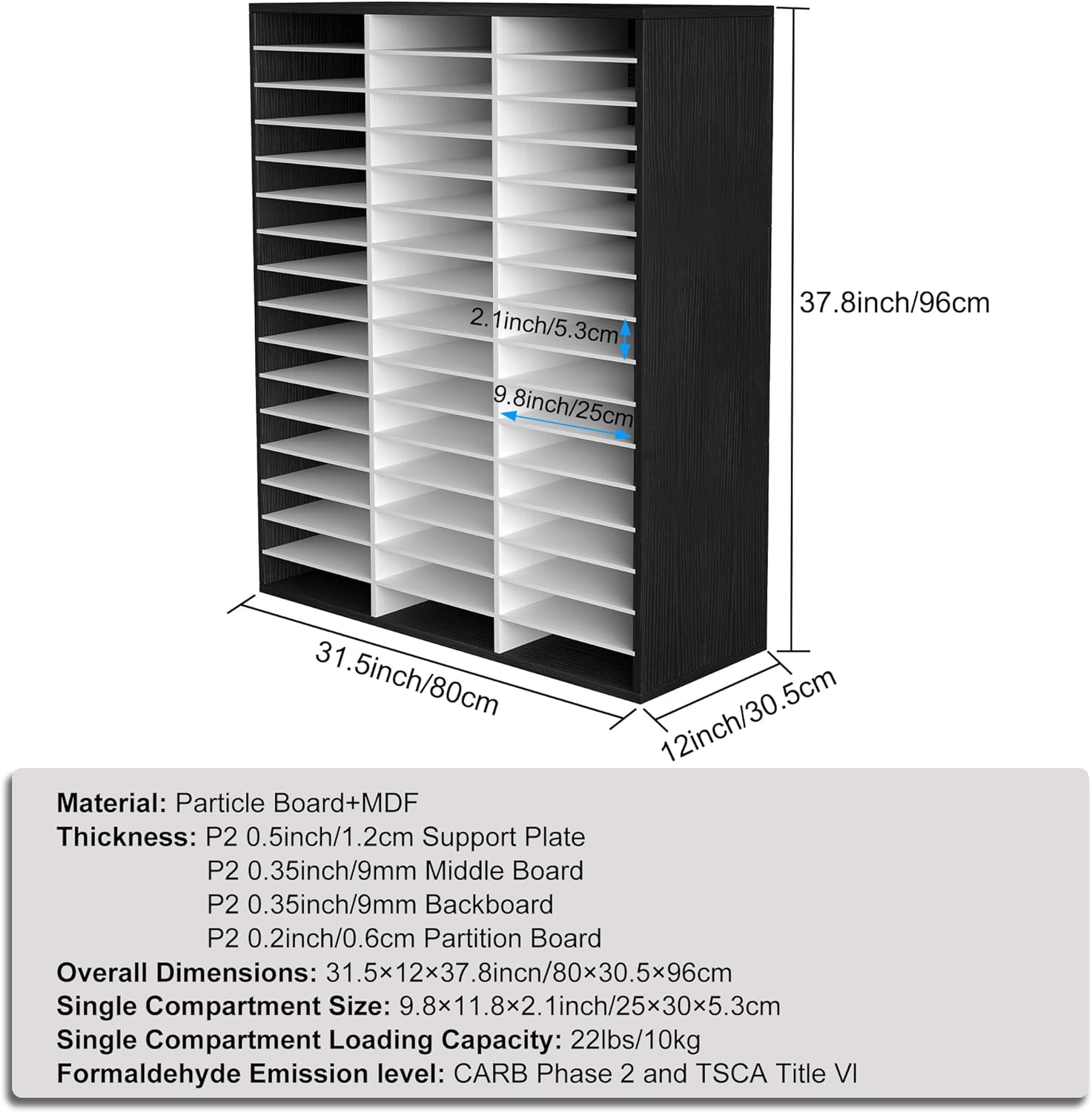 Mail Sorter Wood Literature Organizer, Student Mailbox for Classroom, Desktop Bill Paper sorter for Office Home School, 48 Compartments, White