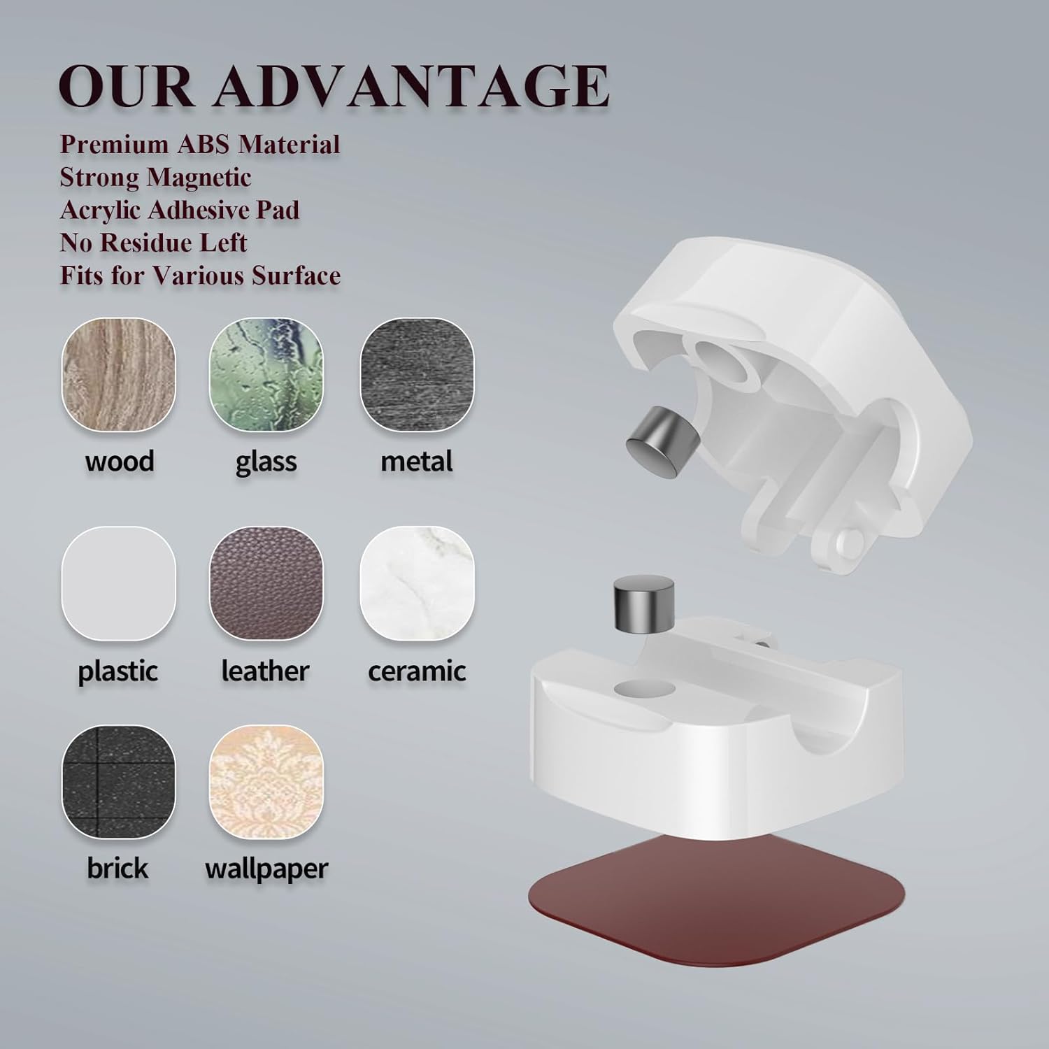 - UNIVERSALLY ATTACHABLE: The professional 3M adhesive tape is adhesive engough for you to install the clips securely on all common surfaces, including wooden tables, glass, ceramic tiles, plastics and even your car dashboard while at the same time, leaves no any residue when removed.
