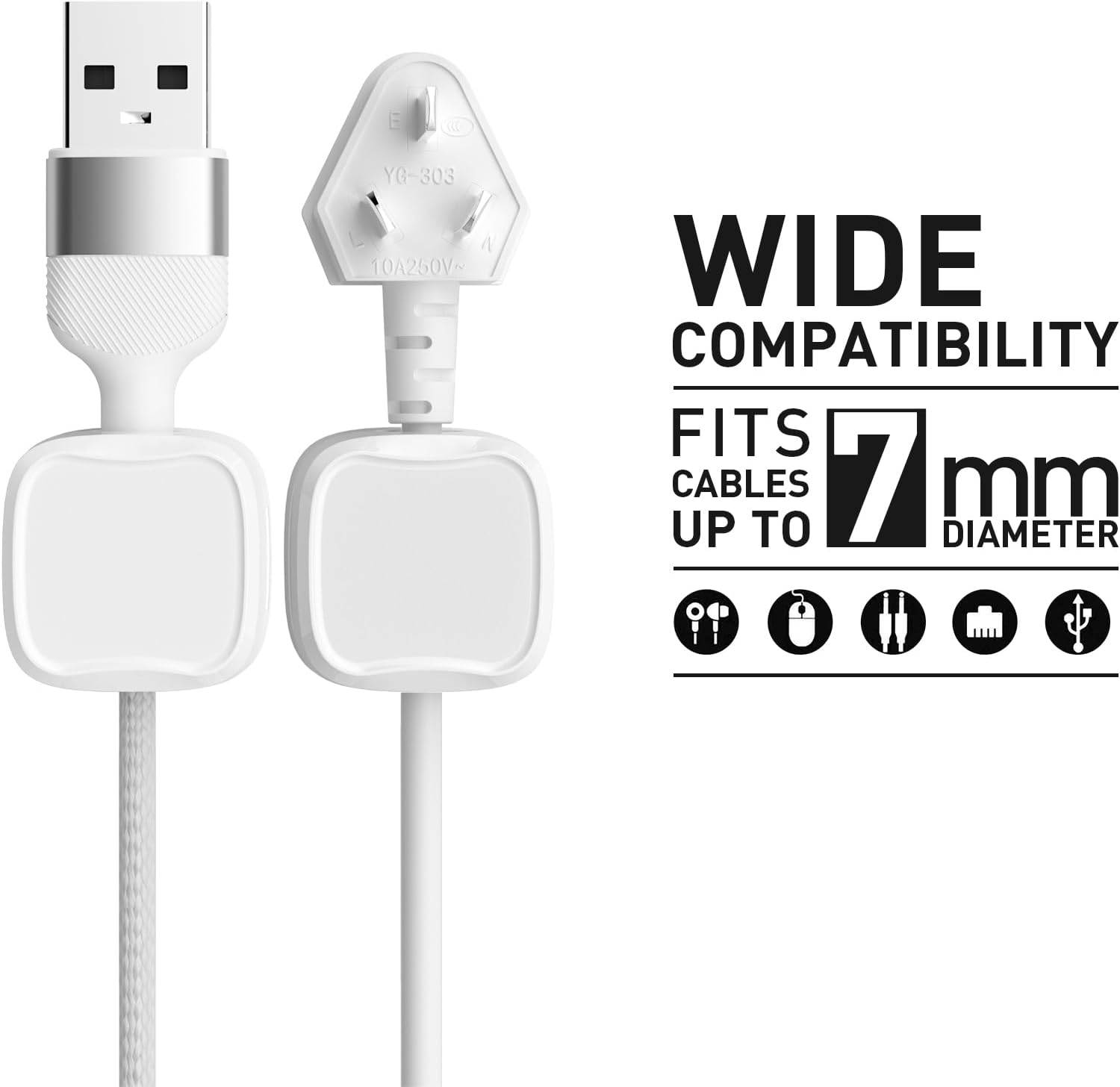 - WIDE COMPATIBILITY: Fits cables up to 7mm diameters, which include your iPhone charger cable, USB cables, type C cable, network cables, HDIMI cord, kitchen appliance power cord and so on.