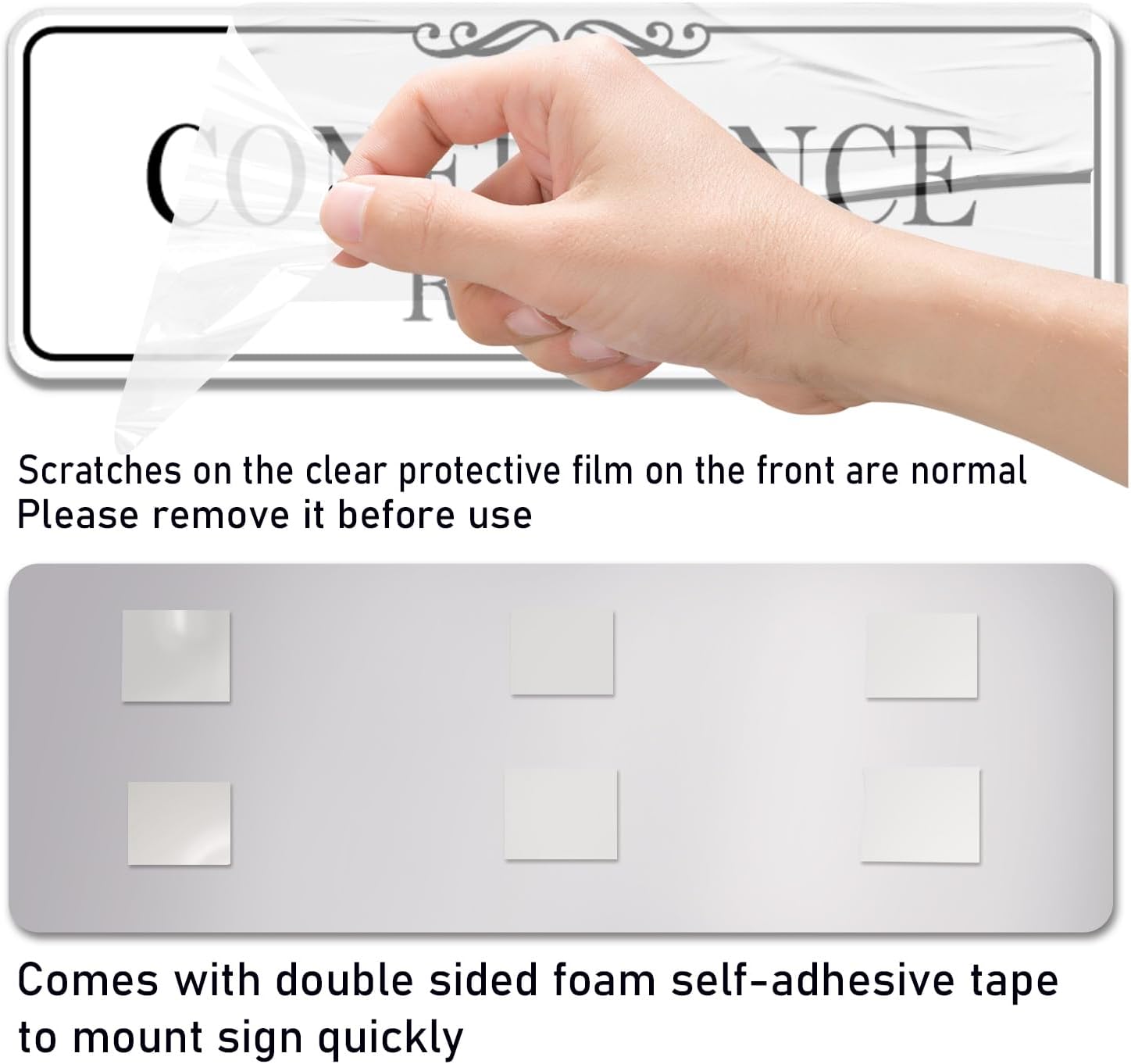 9x3 Inch Conference Room Sign, Acrylic Self-stick Door Wall Signage (Elegant White)