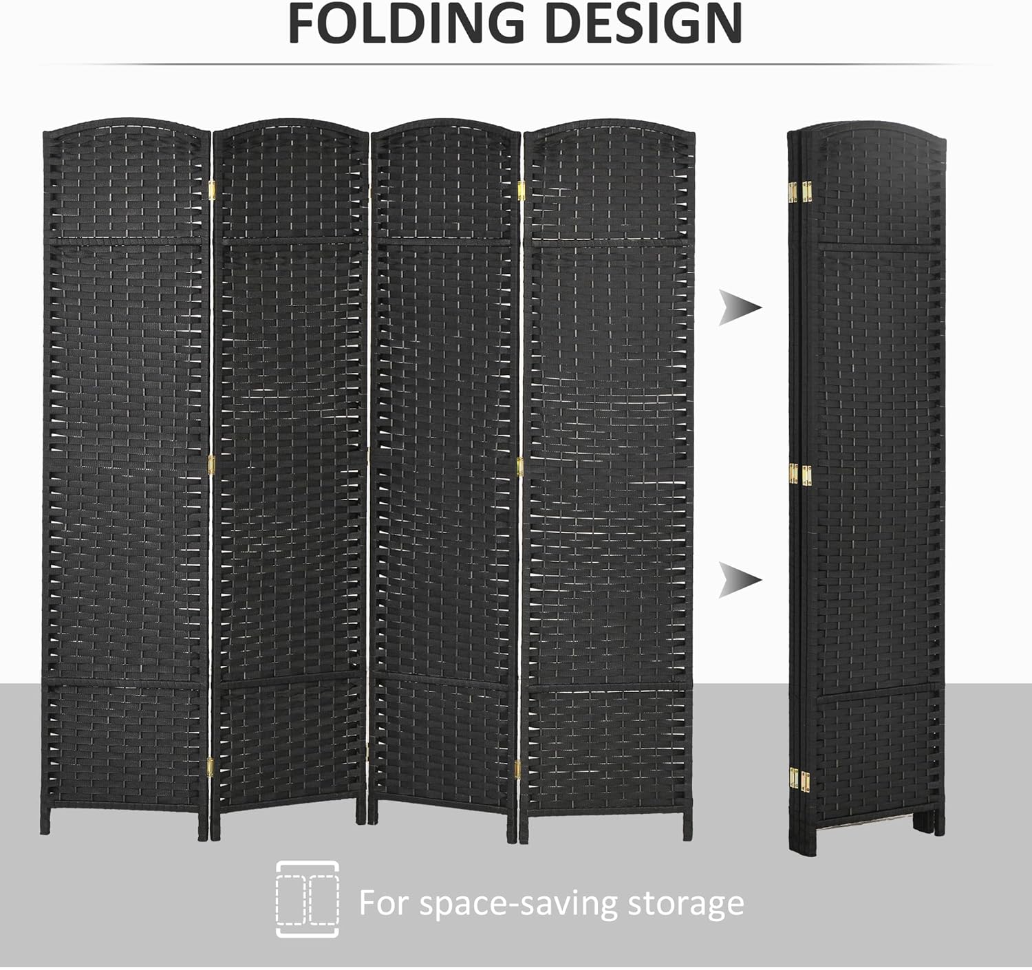 HOMCOM Room Divider, 4 Panel Folding Privacy Screen, 5.6' Tall Freestanding Partition for Home Office, Bedroom, Black