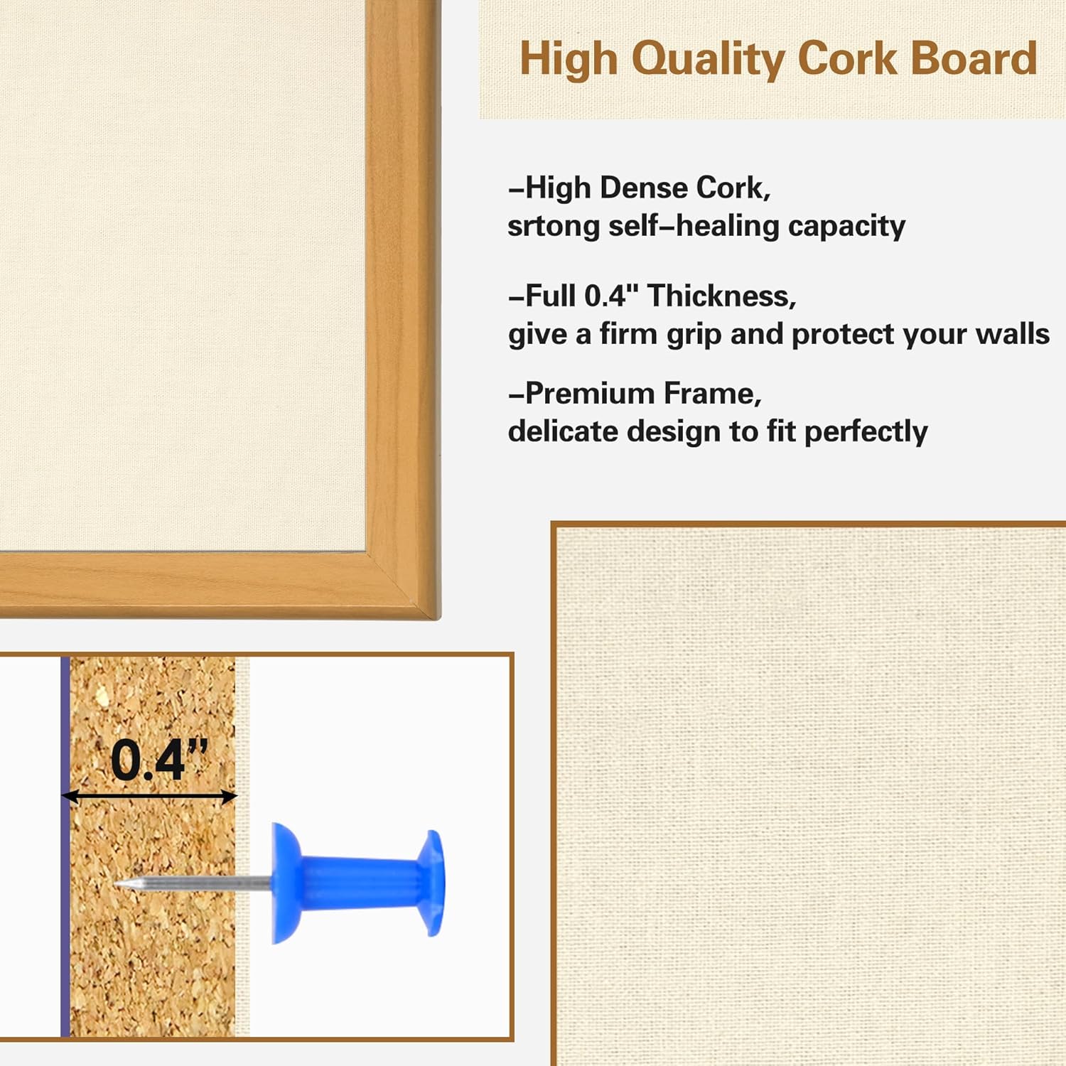 - Premium Cork & Canvas -- Made of top-notch quality cork inside, the bulletin board is self-healing and durable, keeping a good condition in long term use. With an added excellent layer of grey canvas fabric, the linen board can prevent pin holes and puncture well, more fashionable and suitable for decorating.