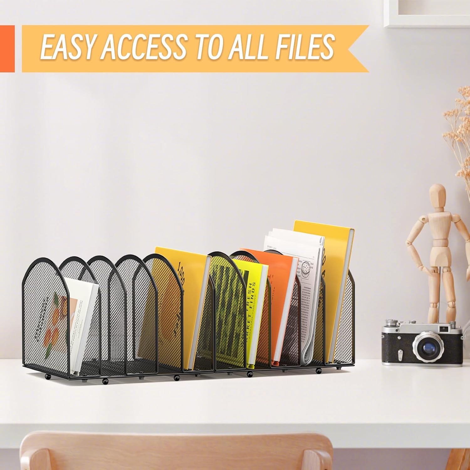 - Sleek and Modern Design: The sleek metal mesh design of this file sorter adds a touch of modern style to any office, school, or classroom setting. It will complement any decor while keeping your workspace neat and organized