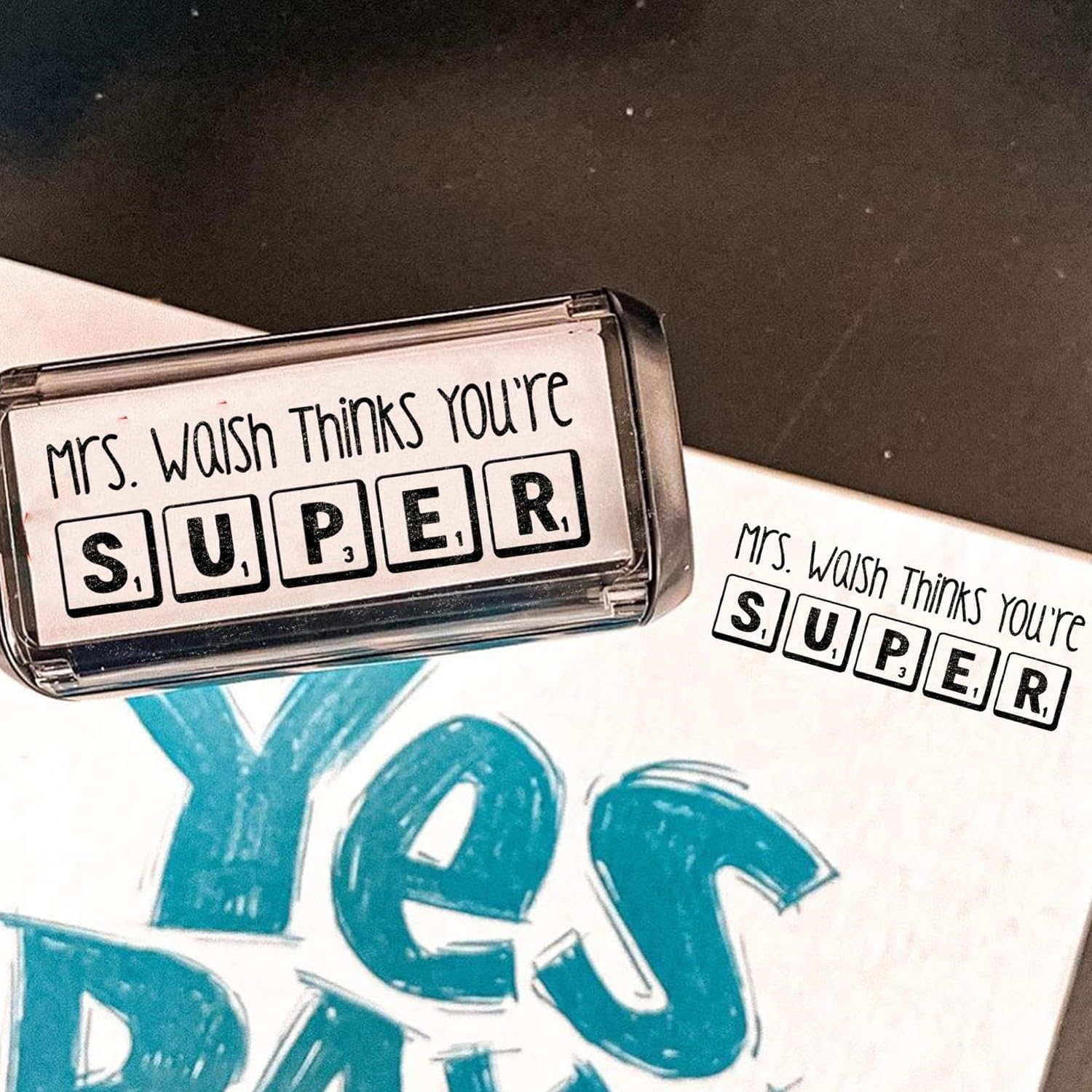 - SELF-INKING SIMPLICITY: Our custom teacher stamp operates with pre-installed self-inking technology for effortless, clean use. With a clear, crisp print and immediate readiness upon delivery, it offers convenience. Choose from seven pad colors β black, red, blue, green, pink, purple, and orange β easily interchangeable for your preference!