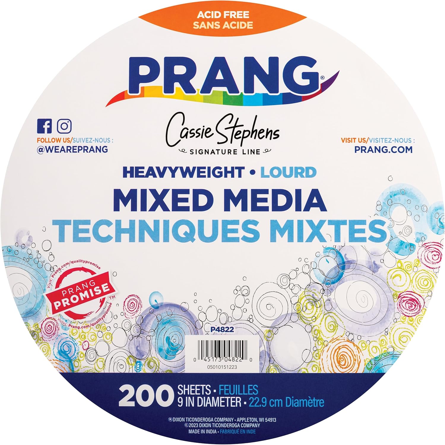 Prang Cassie Stephens Heavyweight Mixed Media Paper Circles, 9", White, 200/Sheets (PAC4822)