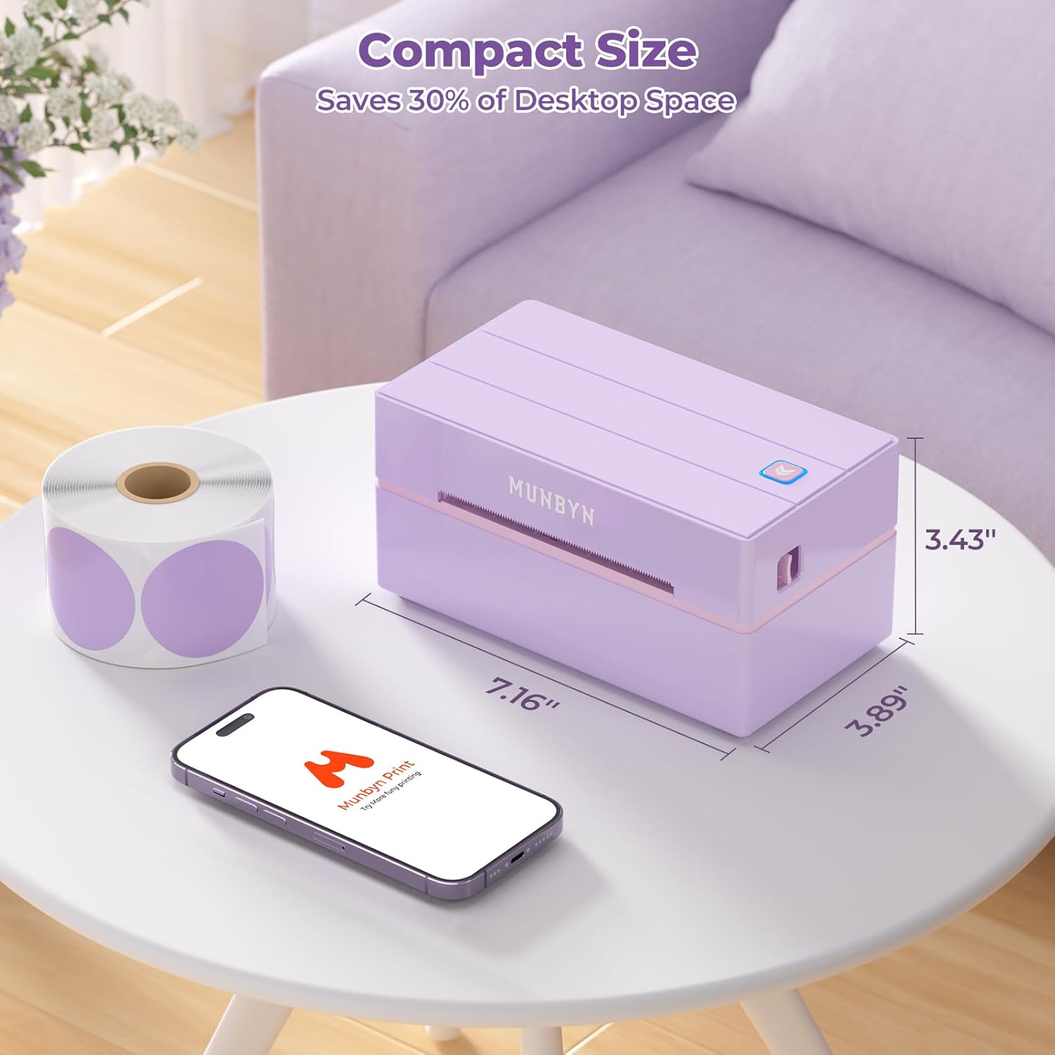 - Wide Compatibility: Works with major shipping platforms like FedEx, UPS, and USPS, as well as marketplaces including Amazon, Shopify, Etsy, and eBay. This shipping label printer supports labels ranging from 1.57" to 4.3" in width and is available in colors such as pink and Lavender Purple. Note: The 130B Bluetooth thermal printer may have issues with UPS thermal paper; MUNBYN thermal labels are recommended