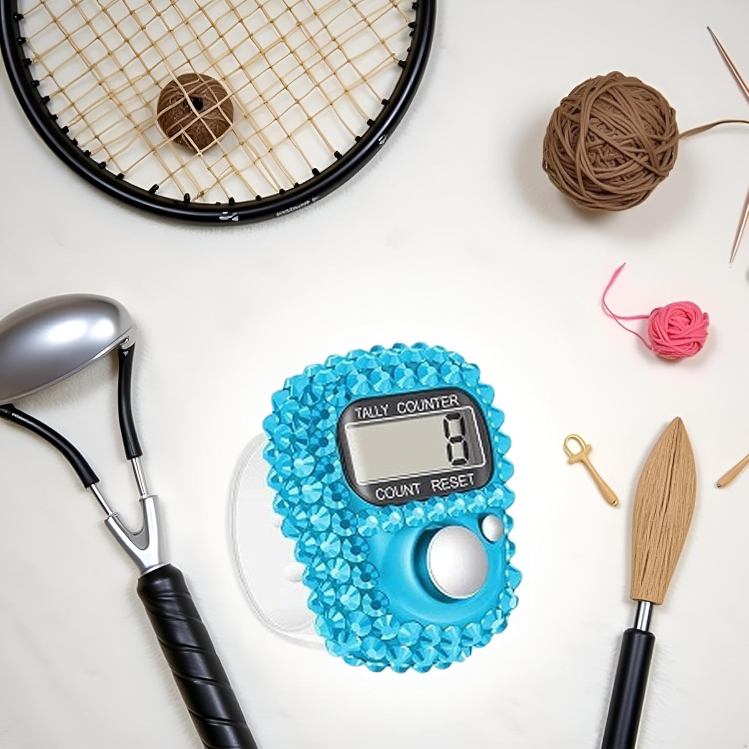 Jowxsx Blue Electronic Finger Tally Counter, Convenient Finger Clicker Counter, Portable Digital Display Tally Counter, Resettable Mini Lap Counter for Golf Goods Counting Lap Knitting Accessories