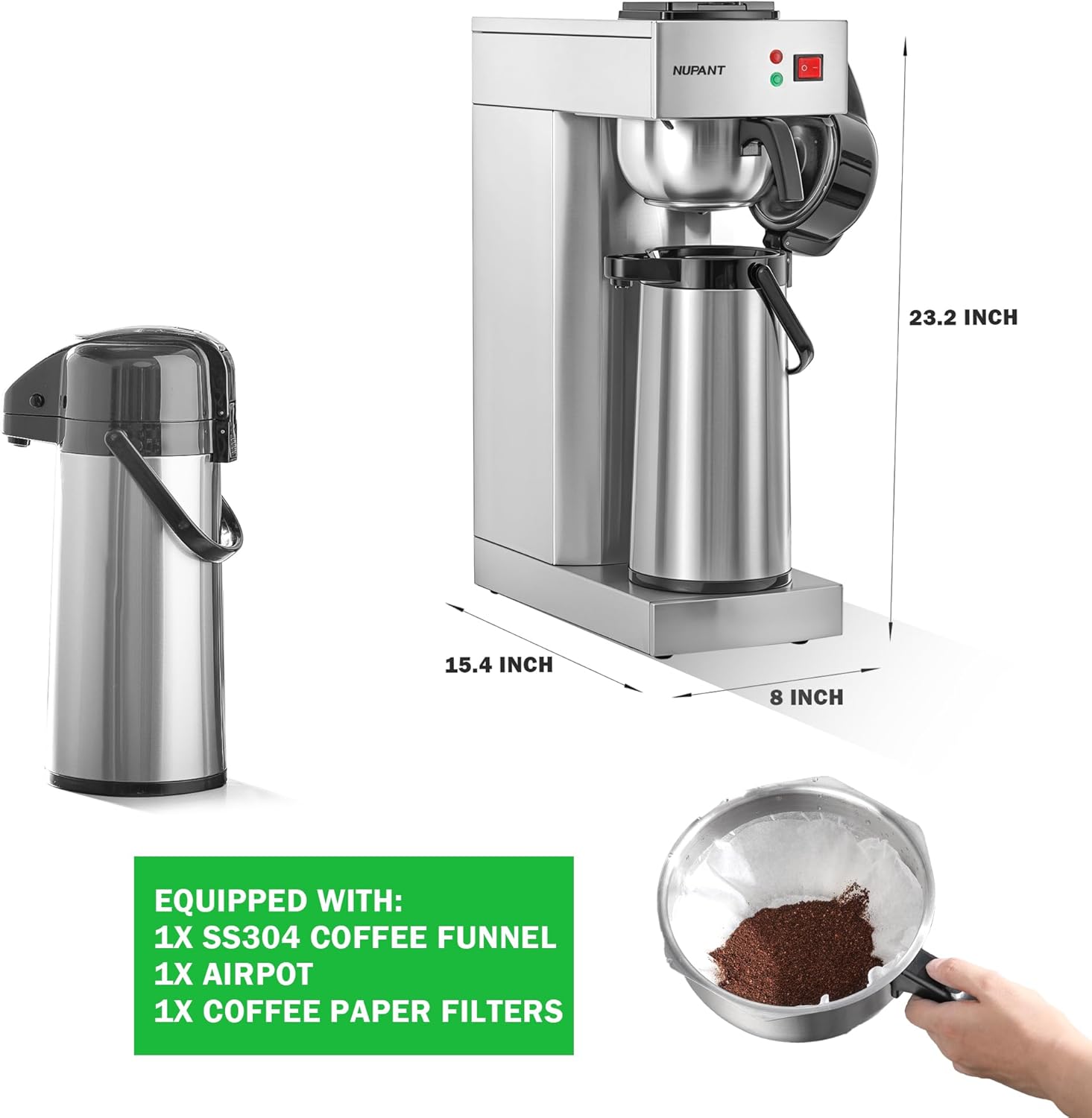 Commercial Airpot Coffee Brewer 2.2L/74oz Dirp Coffee Maker with 24H Insulated Thermal Carafe Stainless Steel Pour Over Coffee Machine 120V/1450W COFFEE Dispenser for Café Restaurant Cafateria