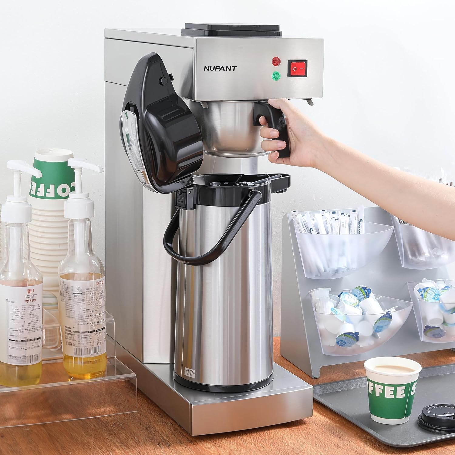 - Richer Coffee Extraction: The Large flat bottom filter basket prevents coffee grounds from overflowing, equipped with a unique spray head, the industrial coffee brewer allows thorough contact between hot water and coffee powder, resulting in richer extraction and maximum flavor with each fresh brew. Whether you need coffee for 10 people or 100, this airpot coffee maker delivers consistently excellent flavor brew after brew