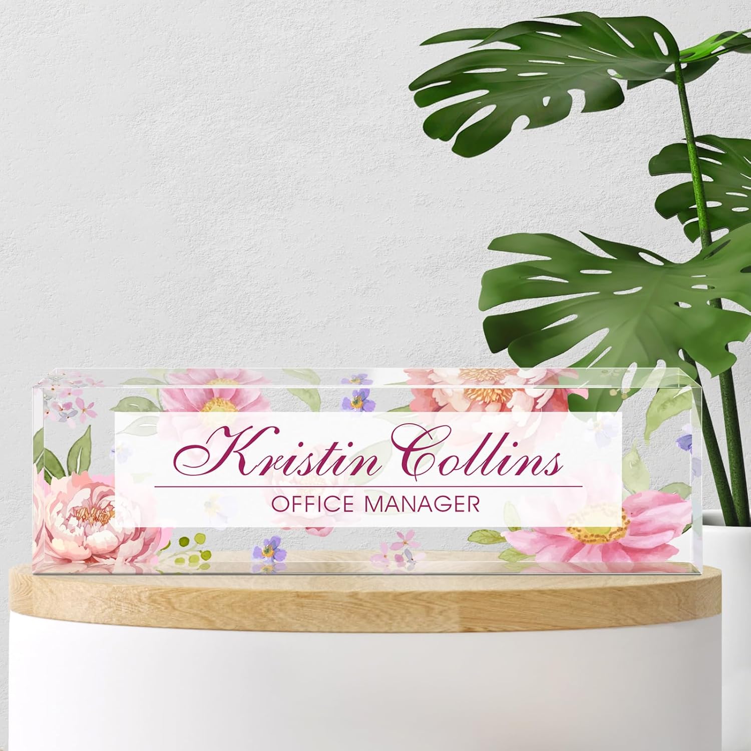 - π Premium Quality: Crafted from premium acrylic, the personalized desk nameplates are built to last. With exceptional durability and clarity, they're ten times stronger than glass. And thanks to the special UV printing technique, the colors stay vibrant and the text stays sharp, no matter how much time goes by.